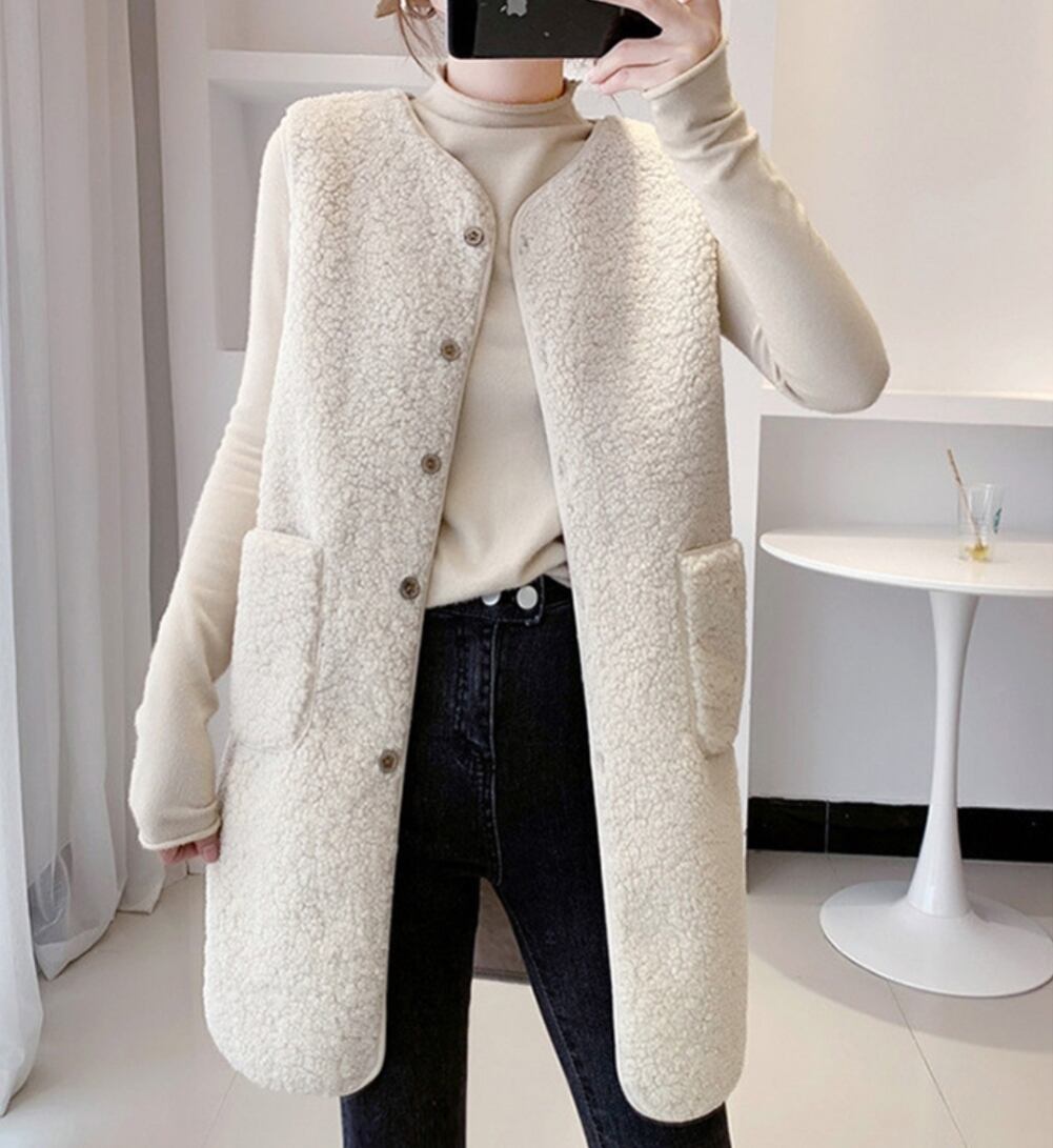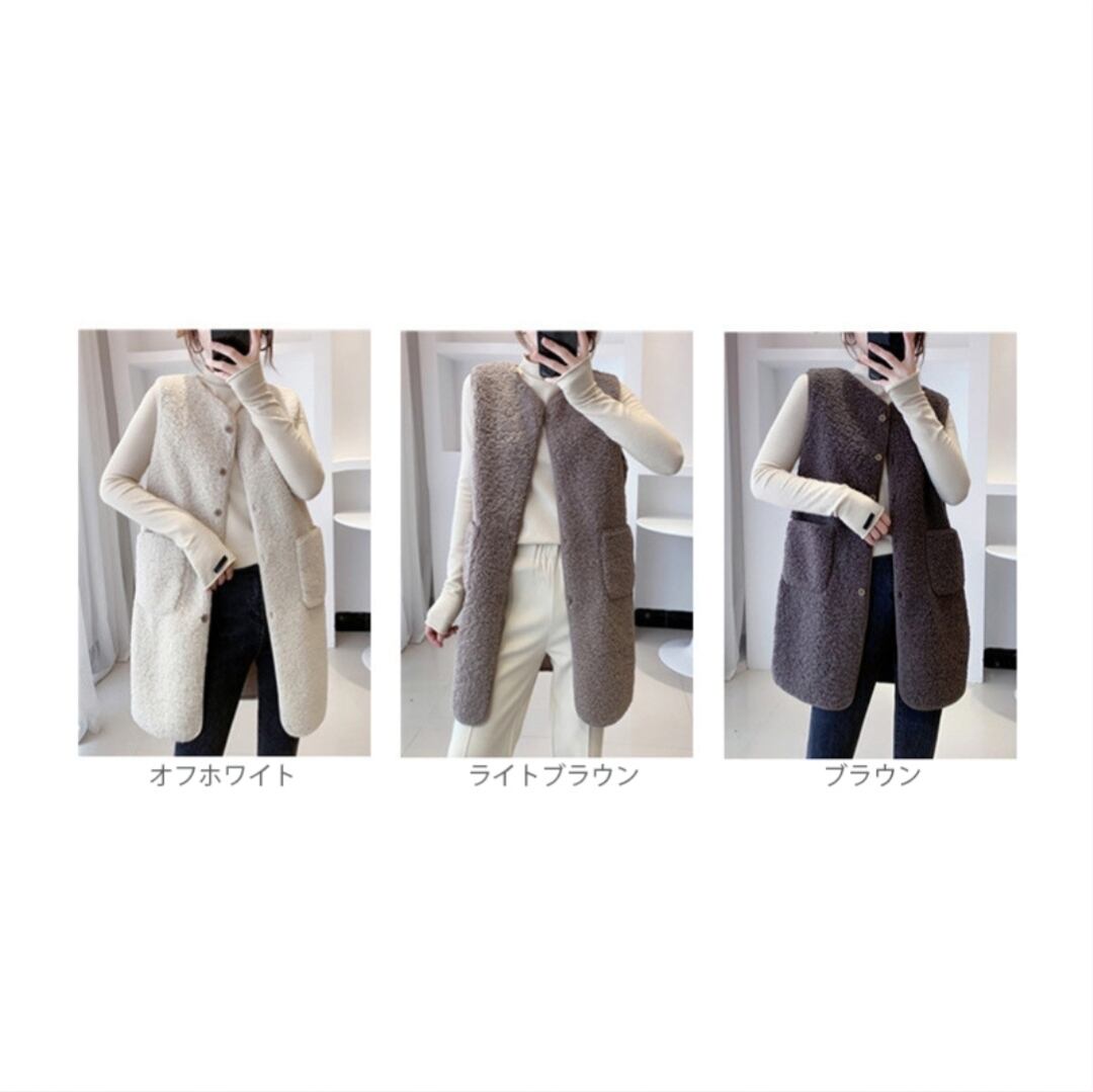 プードルファーベスト アウター ノースリーブ ロングベスト 防寒 ムートン調