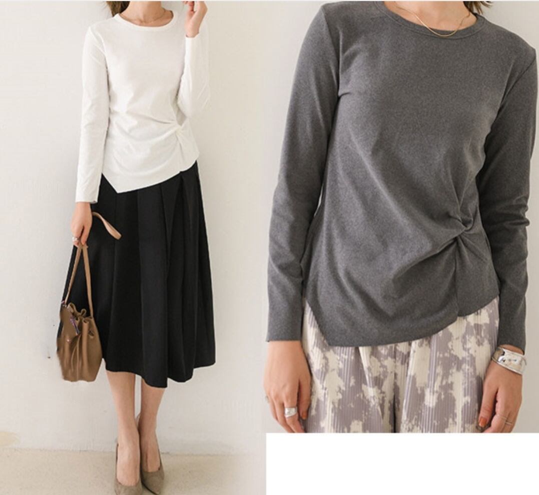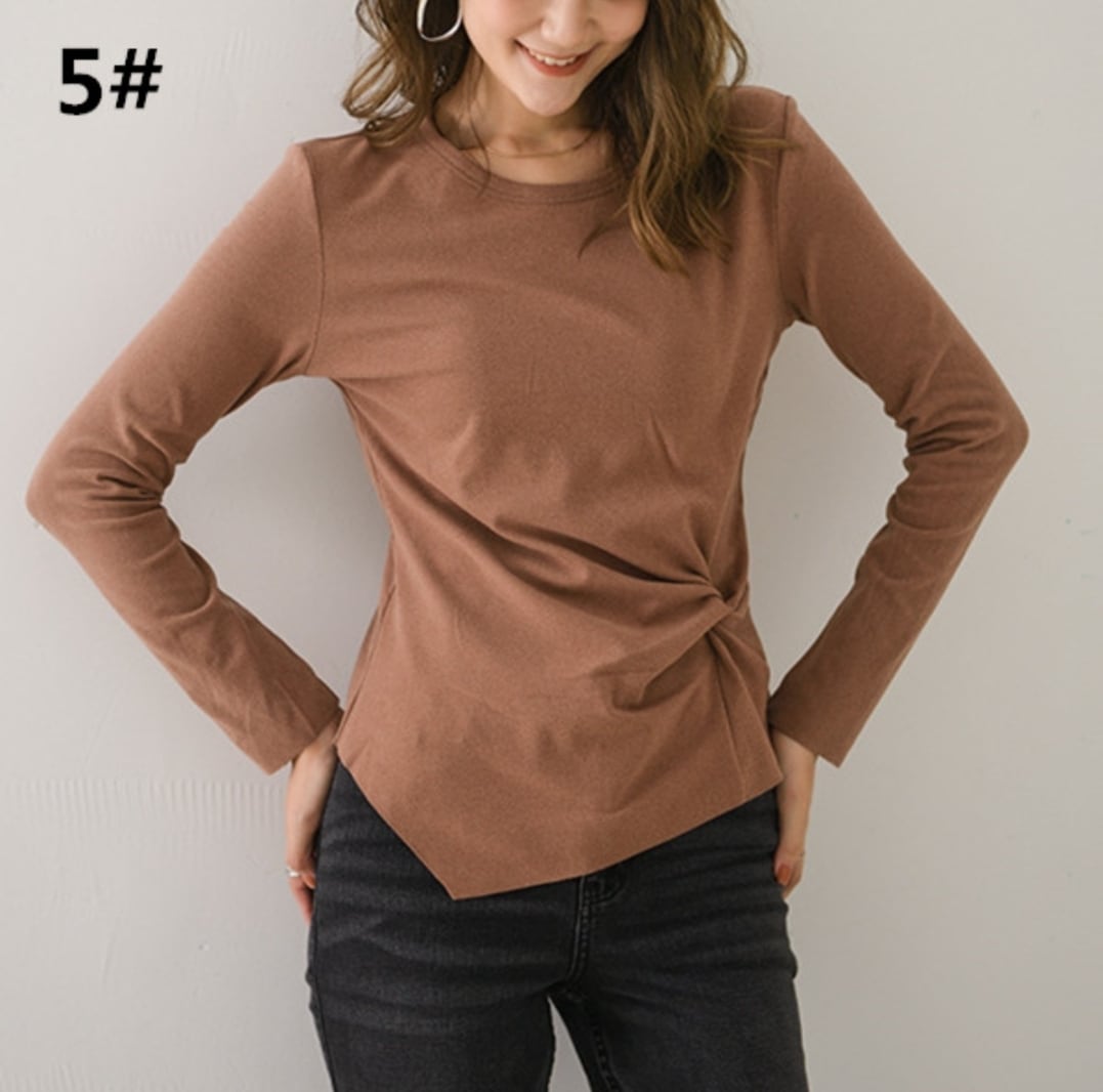 長袖シャツ トップス レディース 2025年新作 tシャツ インナー 不規則デザイン 着痩せ