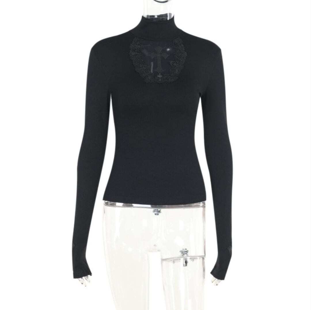 トップス カットソー Tシャツ ロンT レース シースルー 細身 スリム レディース