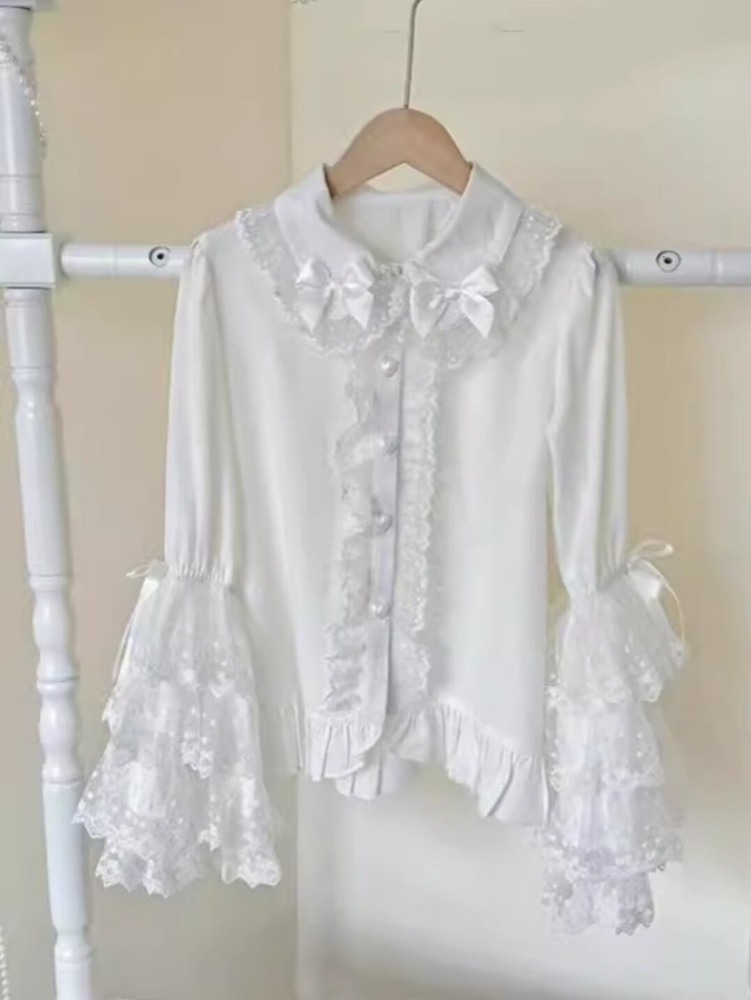 トップス シャツ ブラウス フレア袖 ラッパ袖 フリル レース レディース