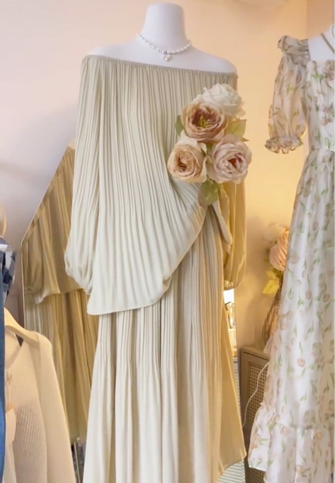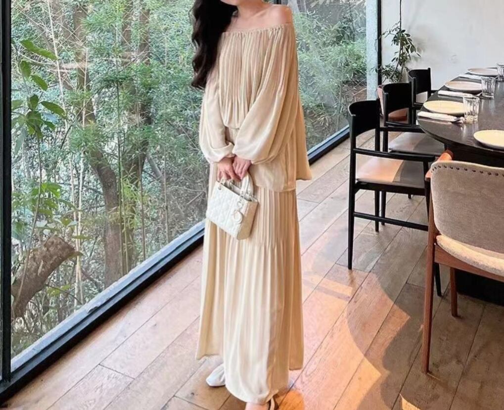 人気オシャレセットアップ一字肩ブラウストップスロングスカート レディース新作