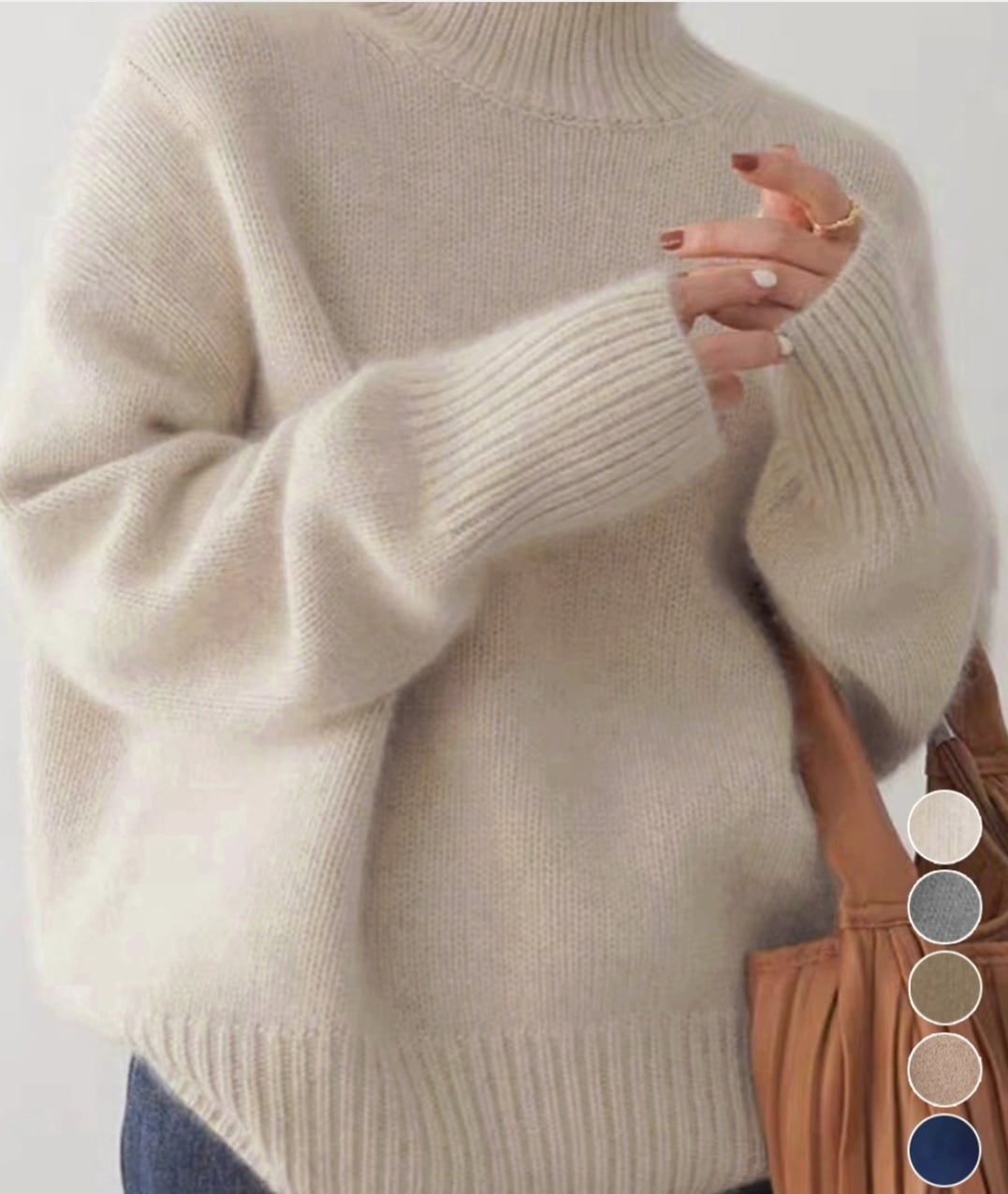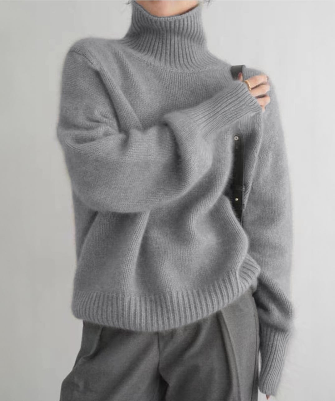 ハイネックで首回りも温かく、ネックを折らずにラフに着こなすと抜け感が増しておしゃれな印象に
