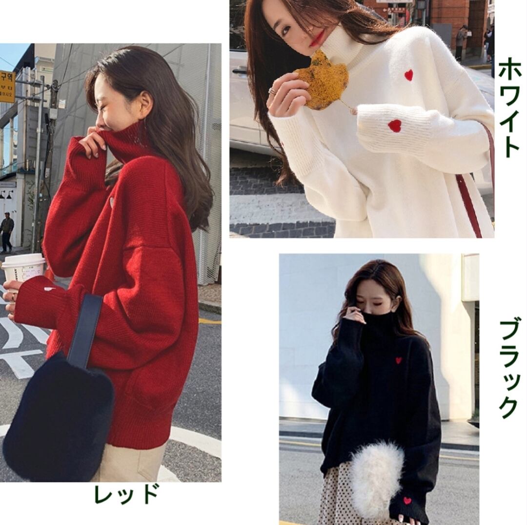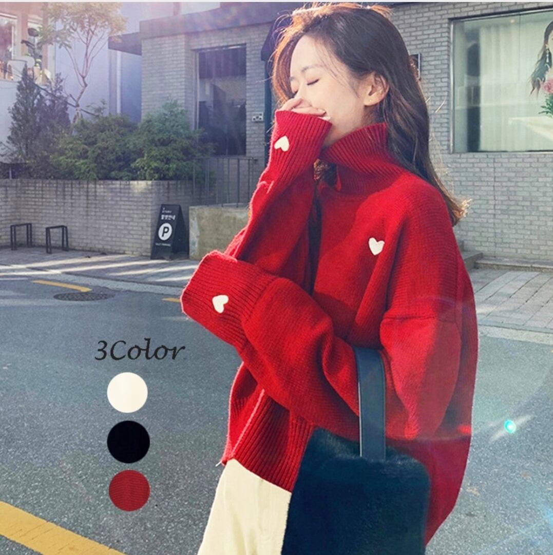 ニットセーター ハイネック ハート柄