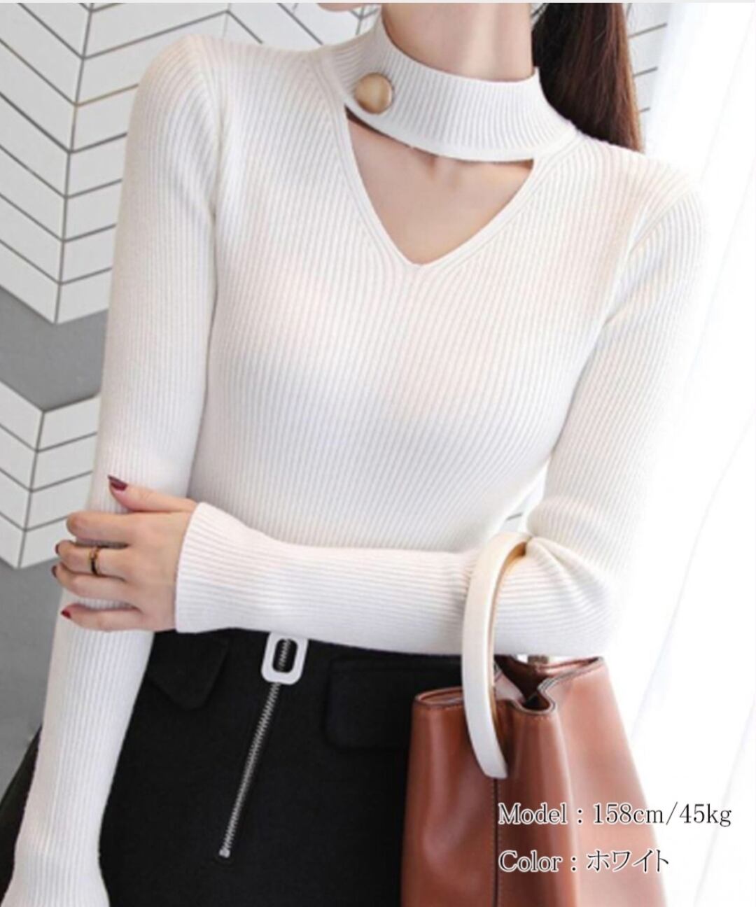 大人女性の魅力を演出してくれるVネックチョーカー風ニットトップス