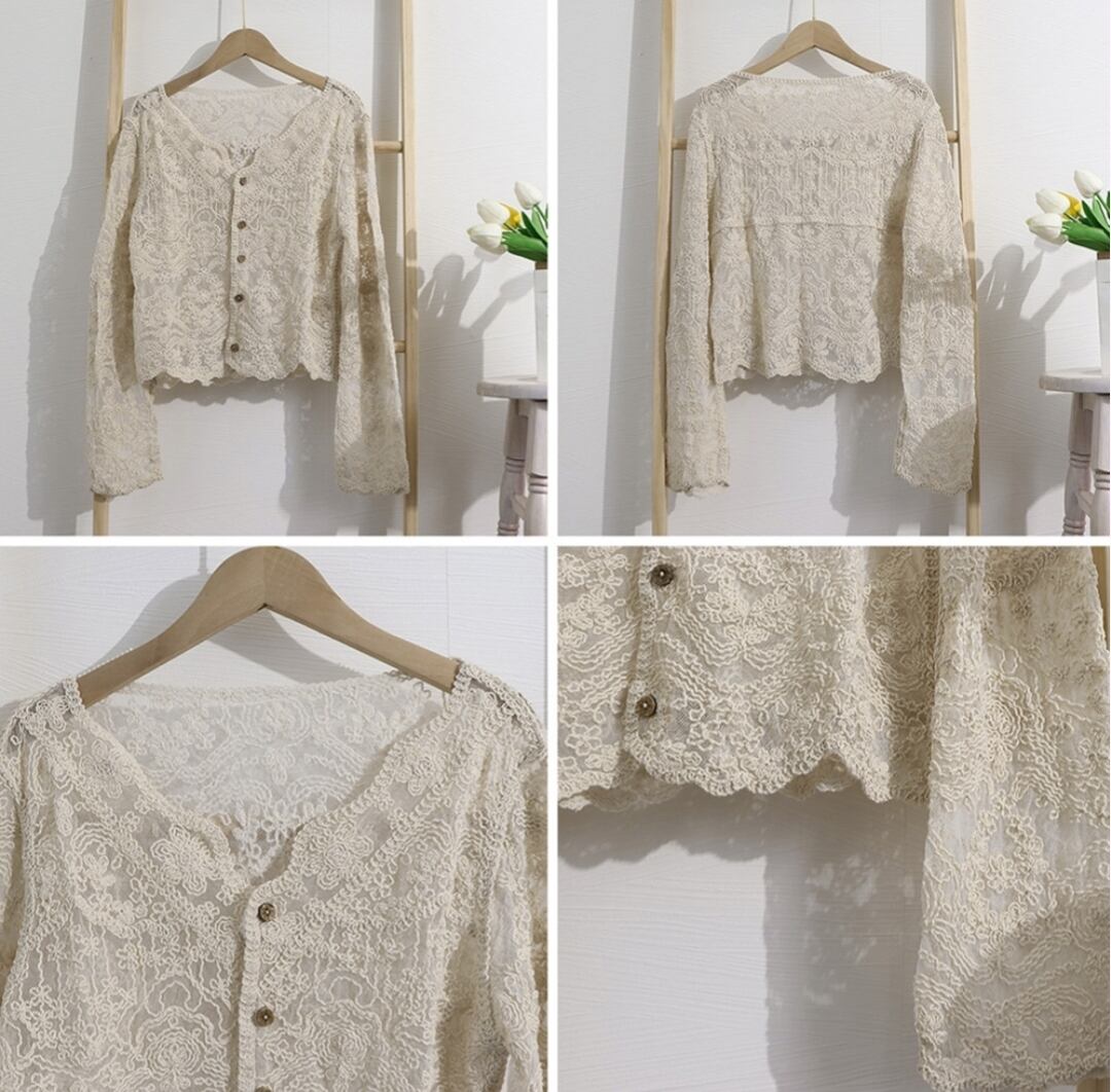 レースブラウス カーディガン Vネック