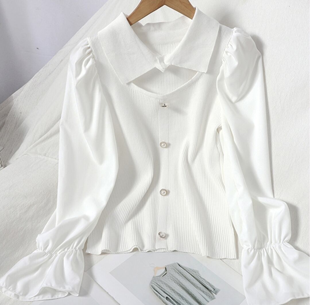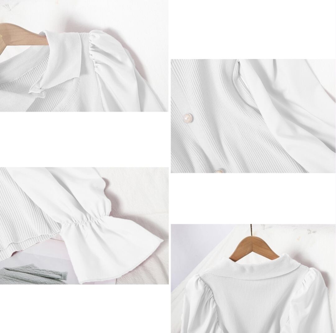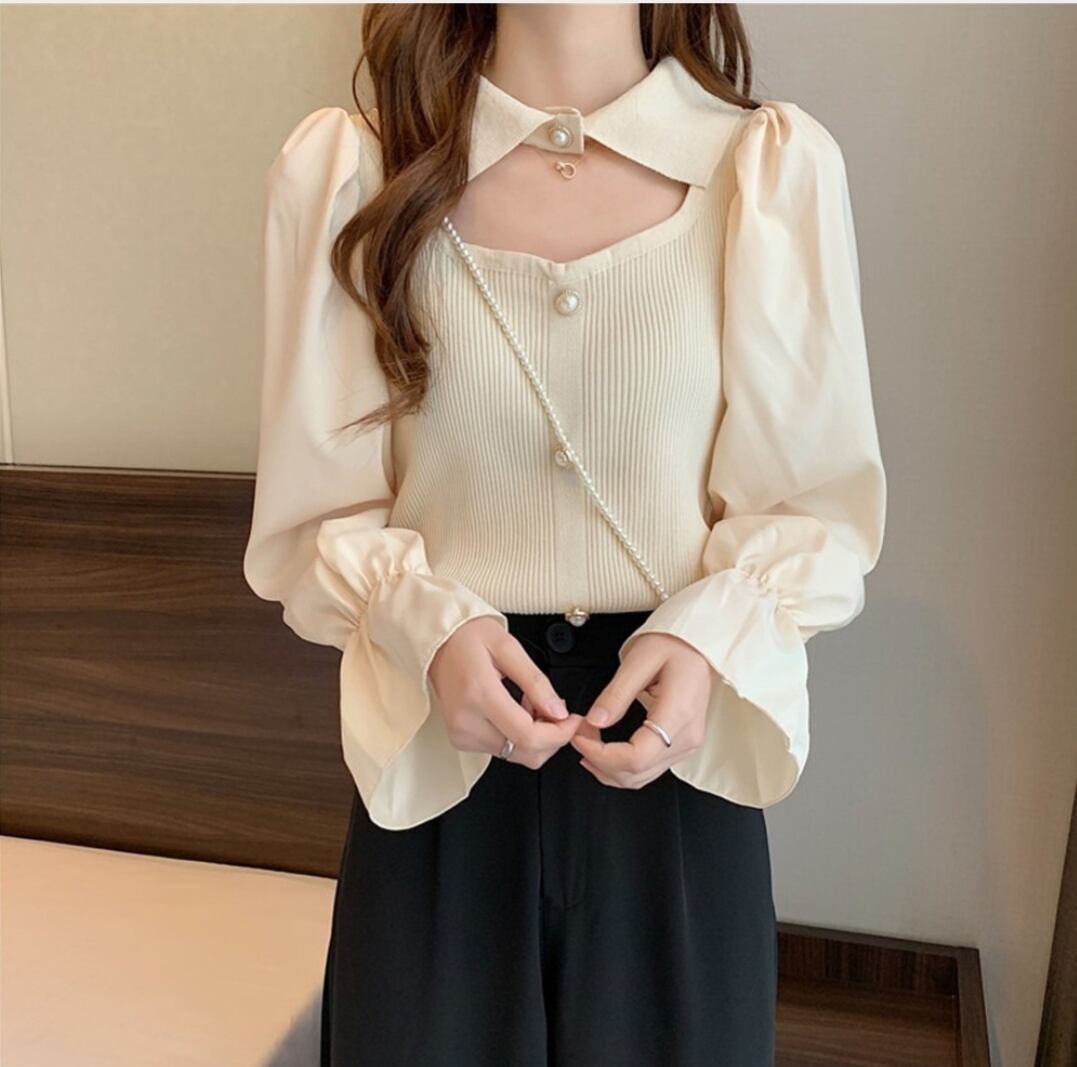 チョーカー風ニットトップス 袖切り替え