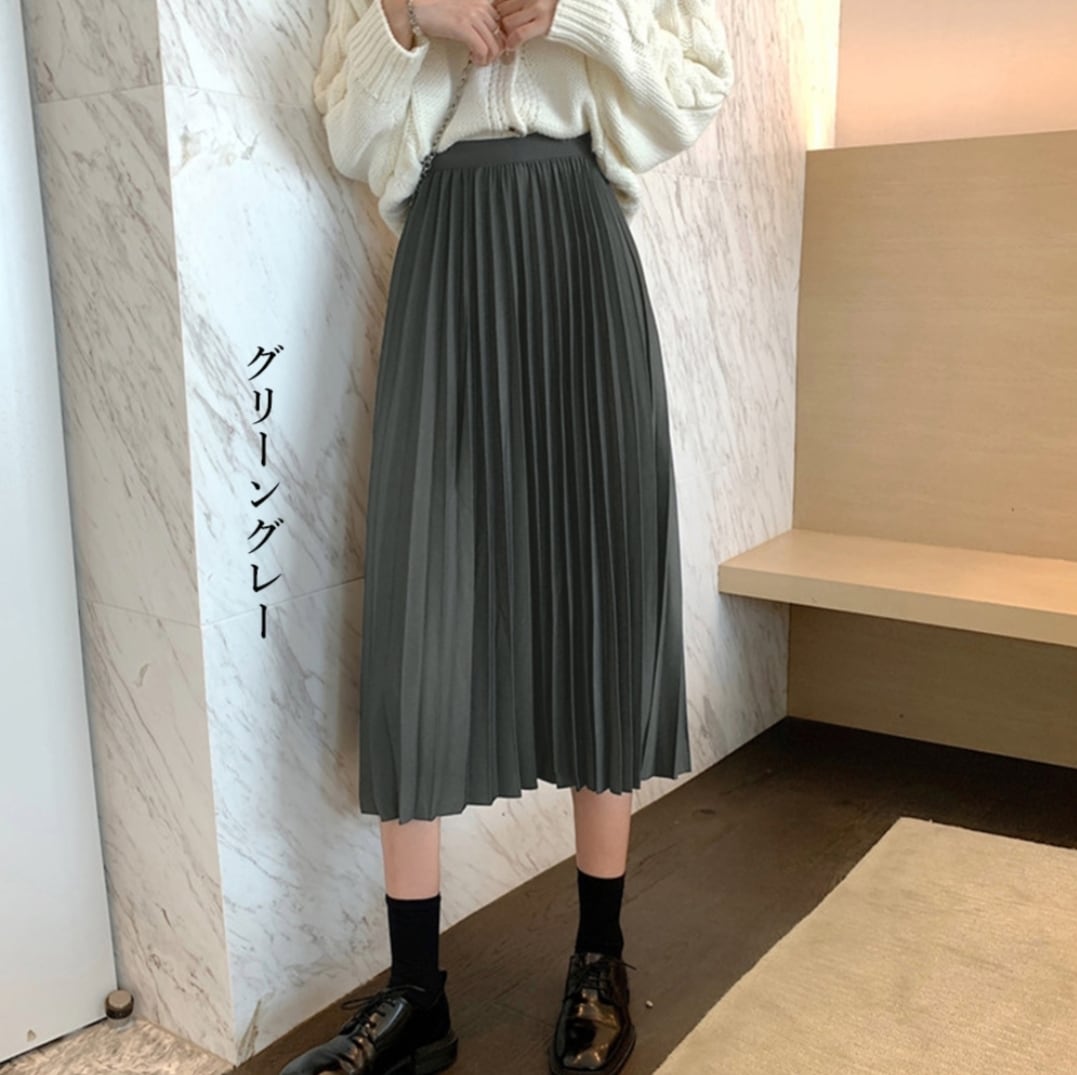 プリーツスカート ハイウエスト 着やせ