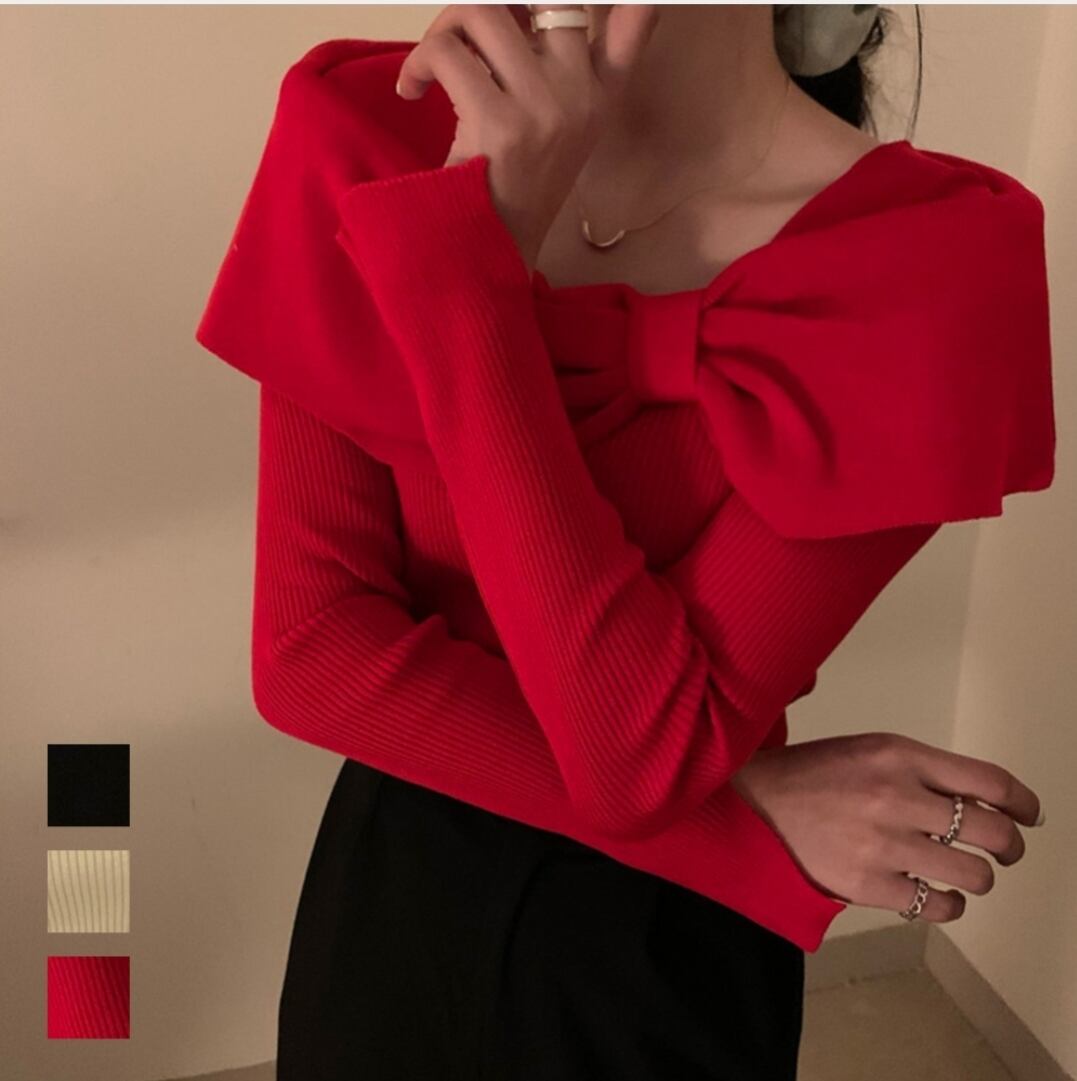 ビッグリボンニットトップスレディース秋冬