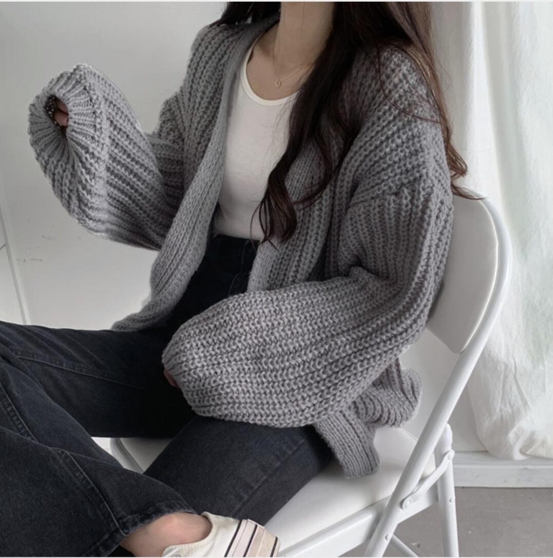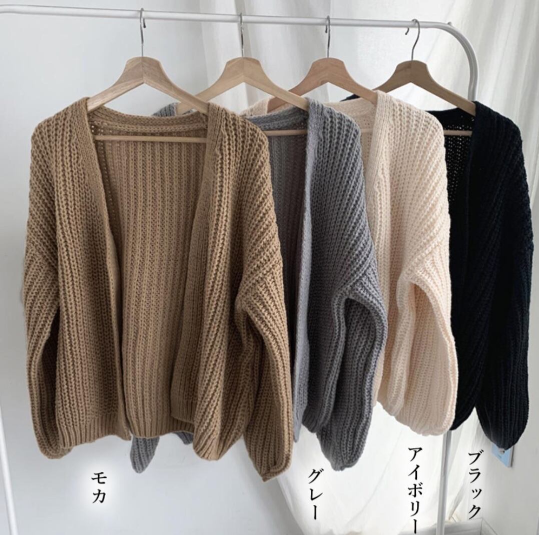 カーディガン 韓国風 ゆるニットトップス 体型カバー ボリューム袖 長袖 ニットアウター 羽織り 春秋服 大人カジュアル