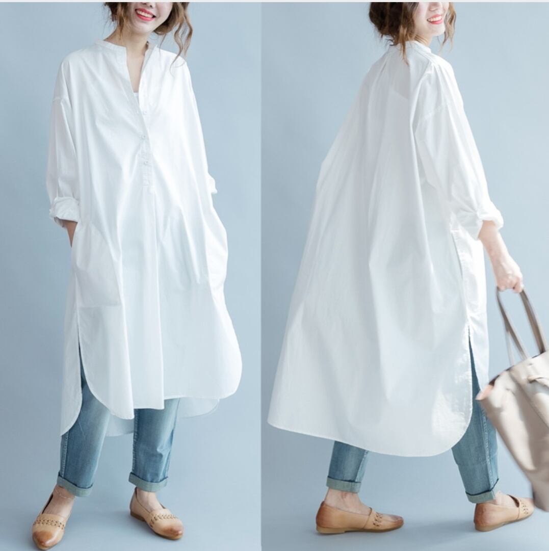 シャツワンピース ワンピース ワンピ レディース 長袖 シャツ 無地 オーバーサイズ 夏新作