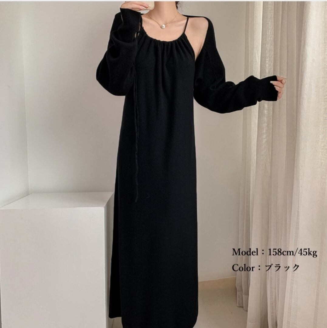 秋冬 キャミワンピ レディース Uネック ロングワンピ セクシー ショート ボレロニットカーディガン セットアップ 上品