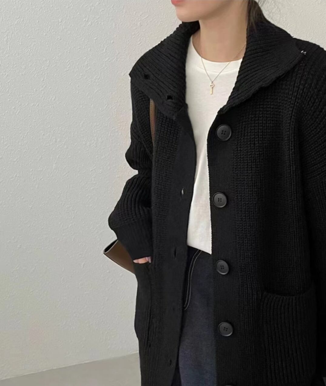一枚で羽織るだけで、おしゃれ度がぐんとアップしてくれるロングニットカーディガン