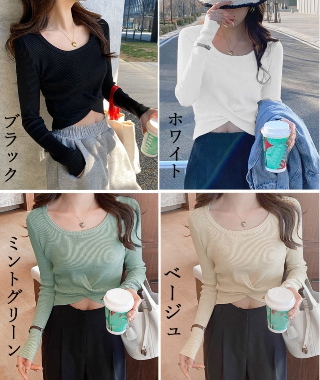 フロントツイスト ニットソー へそ出し セーター ねじり ニットウェア セクシー 無地 韓国風 重ね着 ラウンドネック