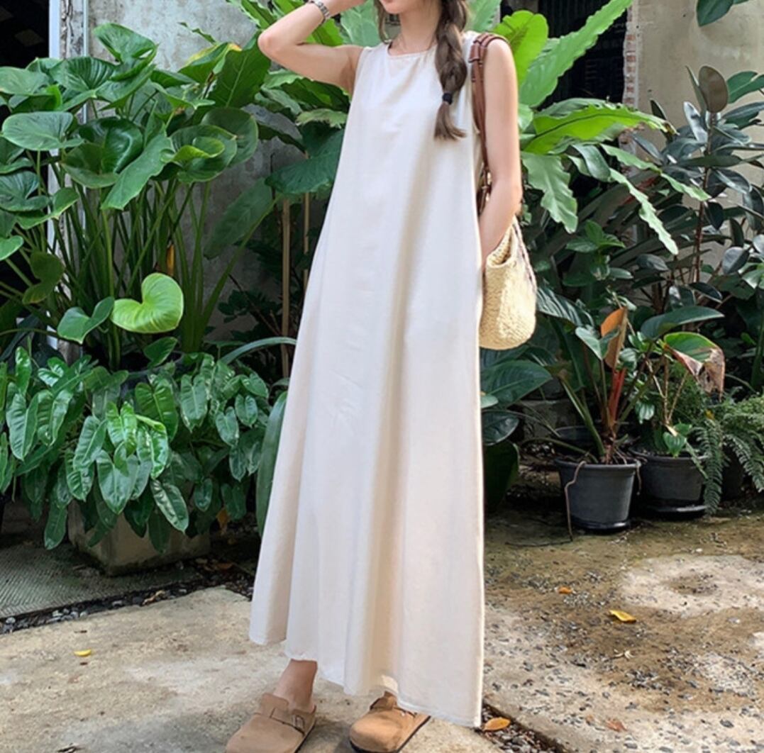 ワンピース レディース ロング丈ワンピース ノースリーブ ラウンドネック 気質 おしゃれ