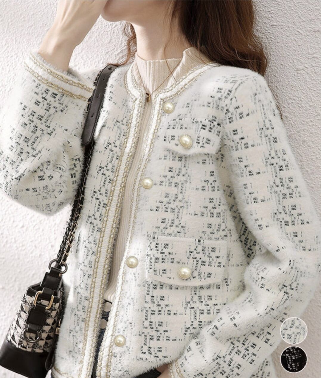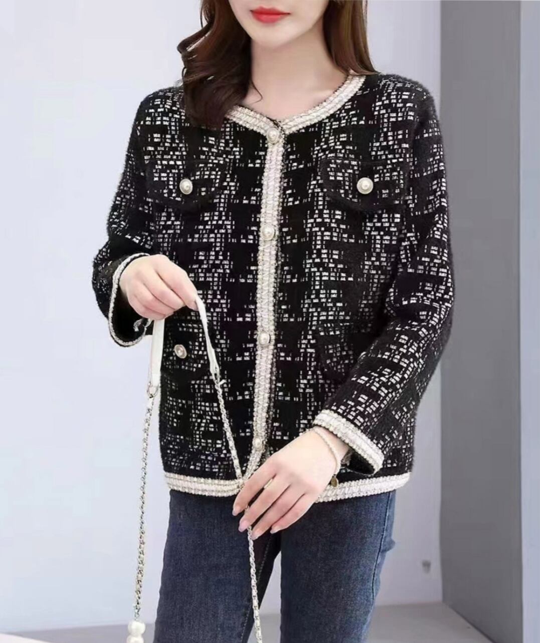 着やせニットお洒落/ボタン付き上着長袖/きれいめジャケット