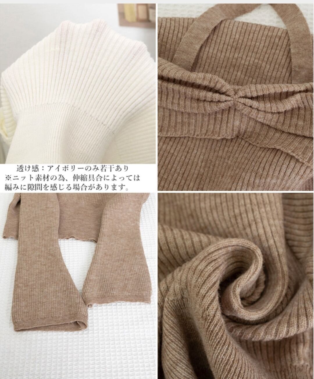 ※ニット素材の為、伸縮具合によっては編みに隙間を感じる場合があります。