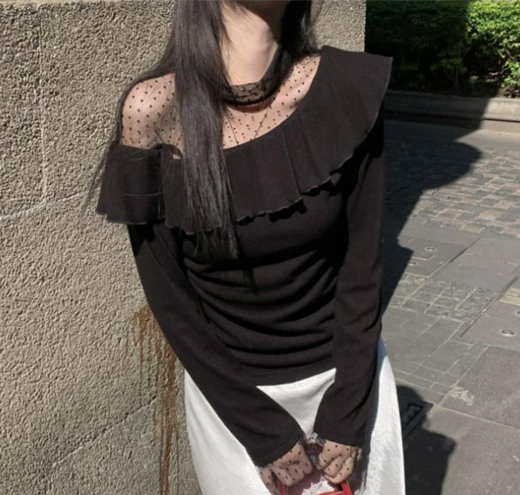 レディース 女 長袖 無地 チュール Tシャツ トップス インナー