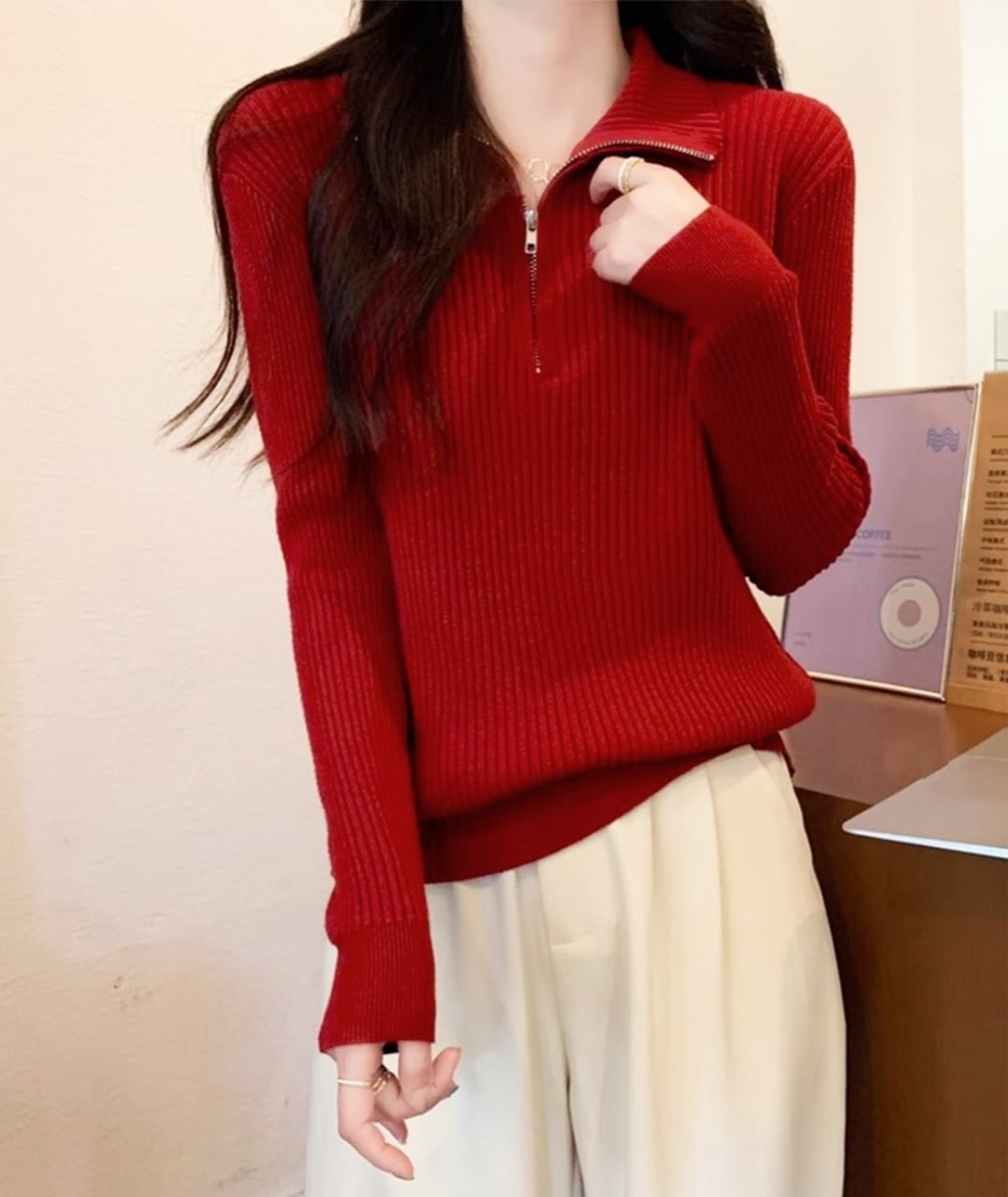 レディーストップス ハイネック 長袖 ZIPニットセーター お洒落 ニットウェア 通勤通学 リブニット 韓国ファッション