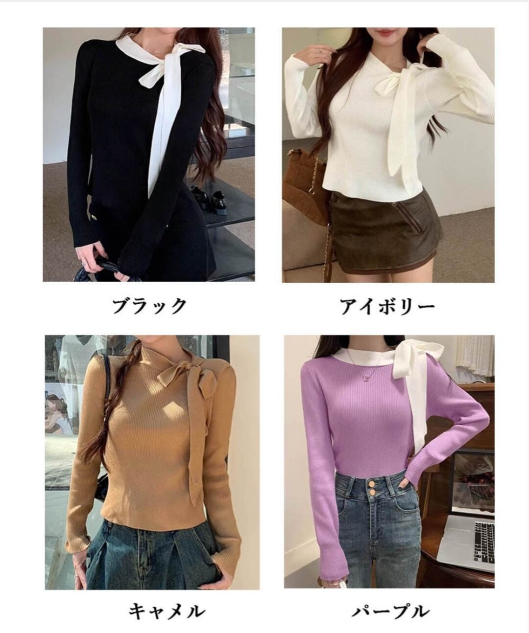 レディース 長袖トップス フェミニン 上品 柔らかい ベーシックニットソー 着回し 無地 可愛いエレガントニットインナー