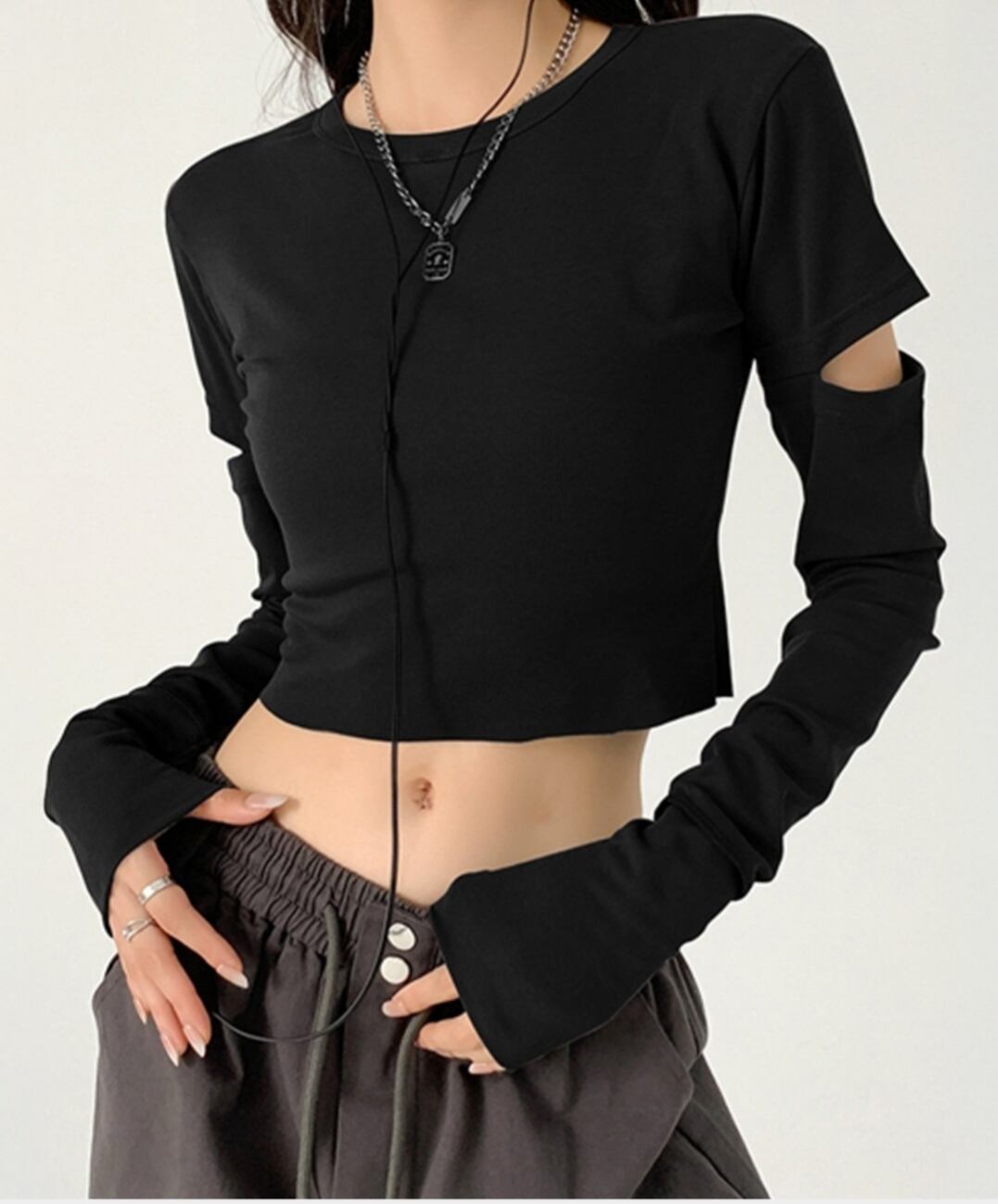 長袖Tシャツ 袖カットアウト カットソー