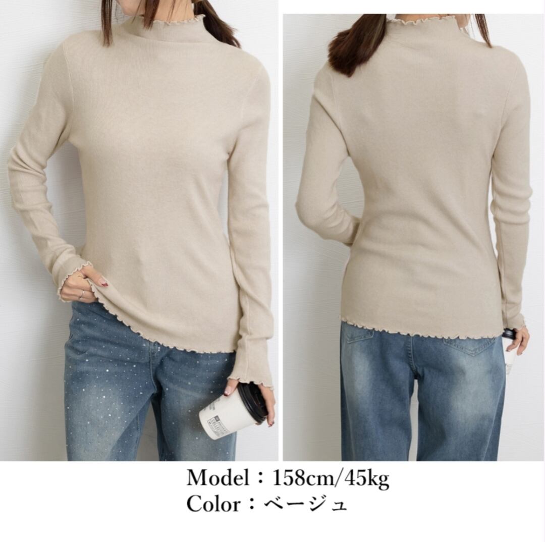 リブカットソー秋冬 着やせ リブニット ニットウエア可愛い