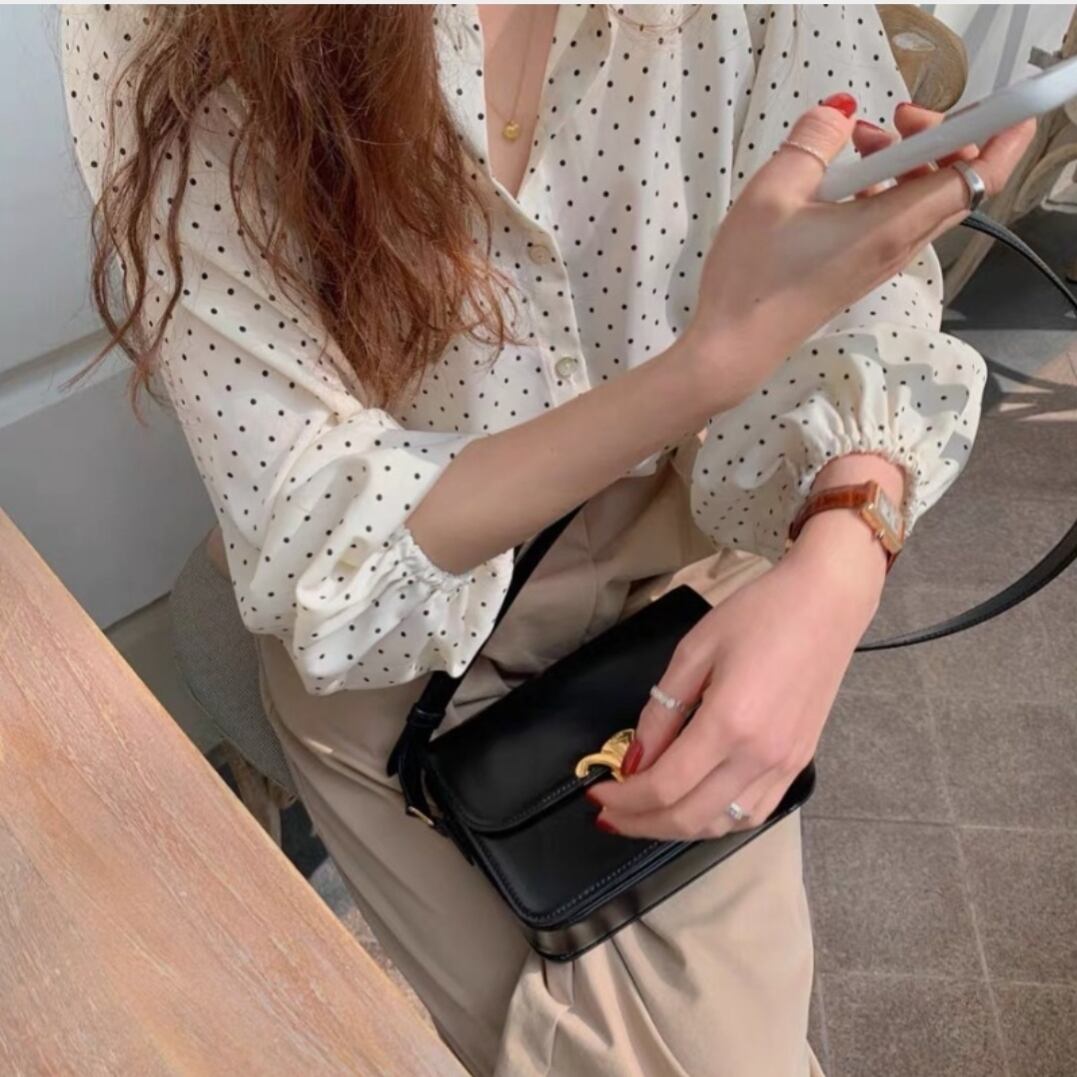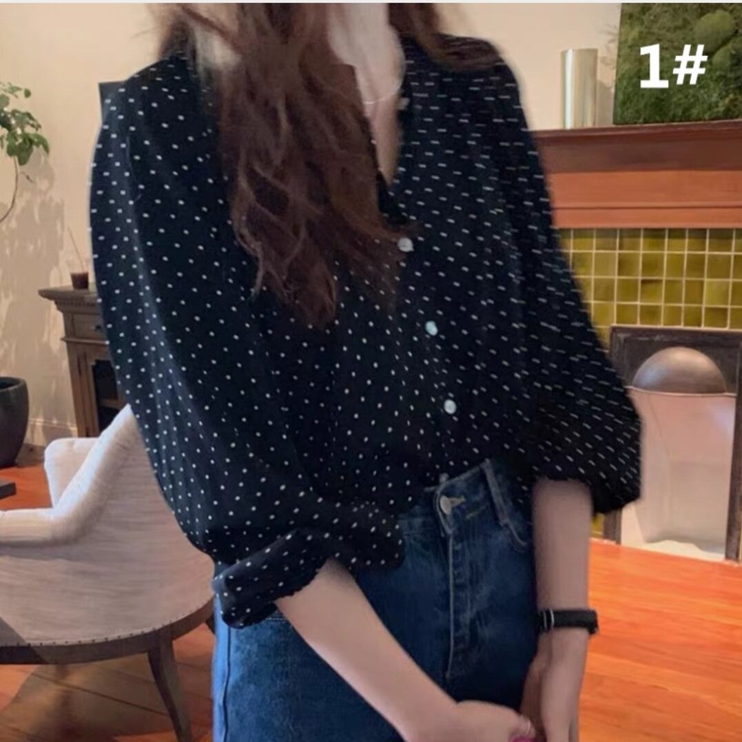 シャツ ブラウス 長袖ブラウス トップス レディース 人気シャツ ランタンスリープ ドット柄 気質 おしゃれ