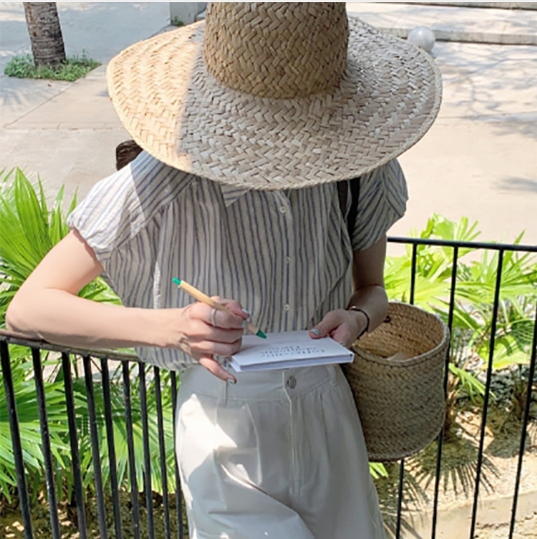ストライプシャツ ブラウス トップス ベーシック カジュアル 襟付き 半袖