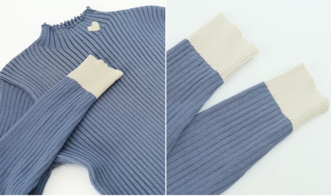 首元にハートが入ったリブニットです。
