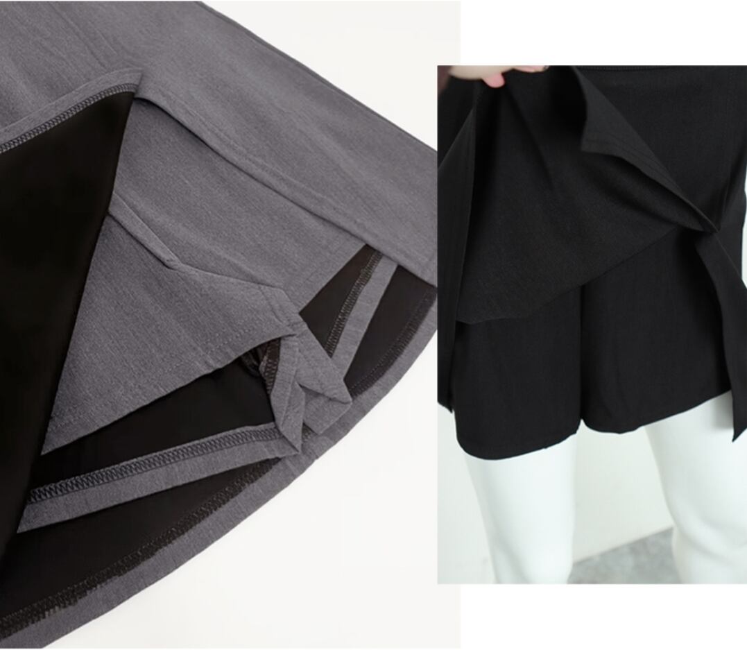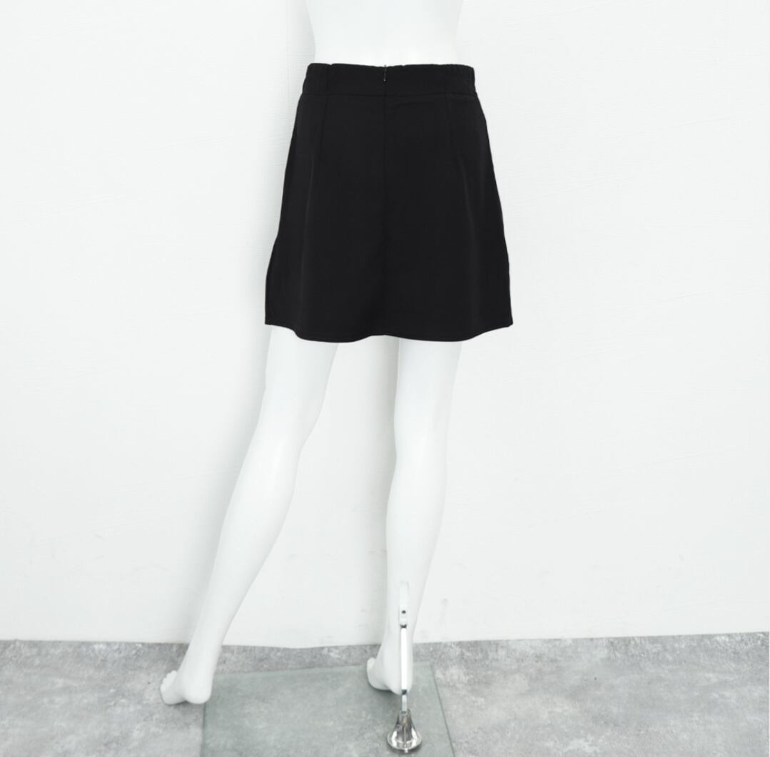 スカショーパン春秋 ショート丈デート服 台形スカート 黒