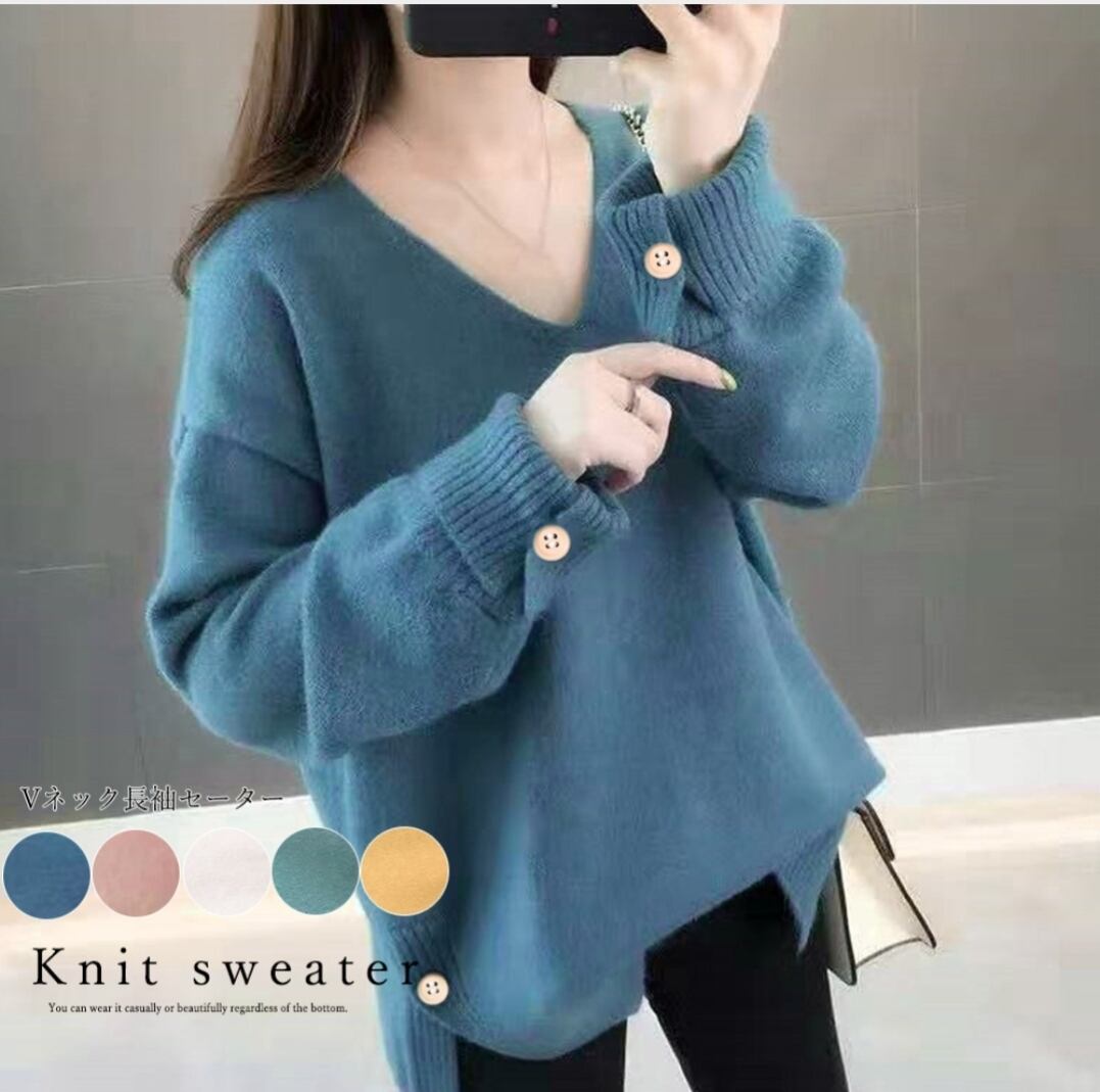 長袖ニットセーター ベーシックトップス カジュアル ニット