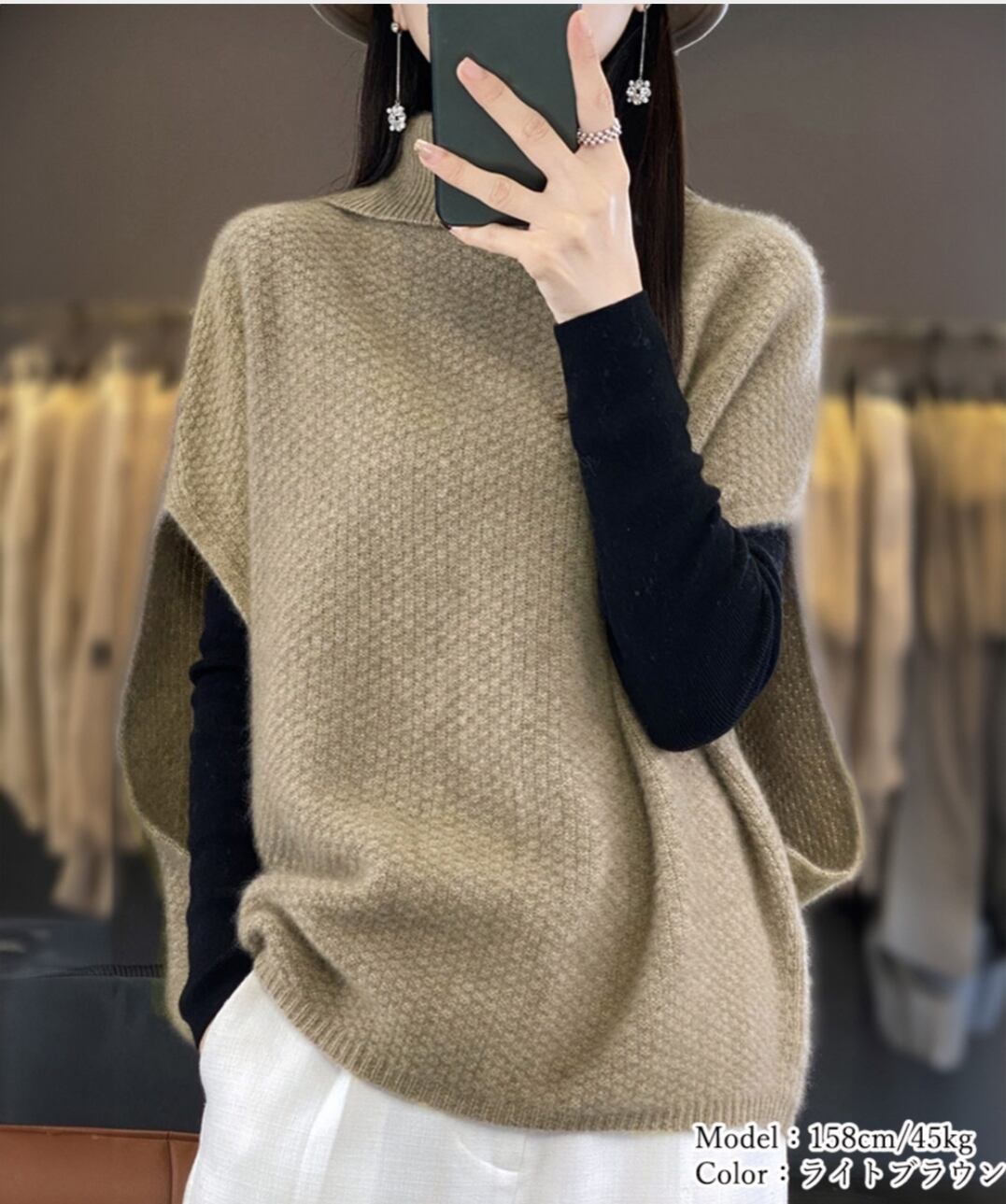ニットトップス ノースリーブ 体型カバー ハイネックニット ゆったり レイヤード ニットジレ 重ね着ニットカットソー