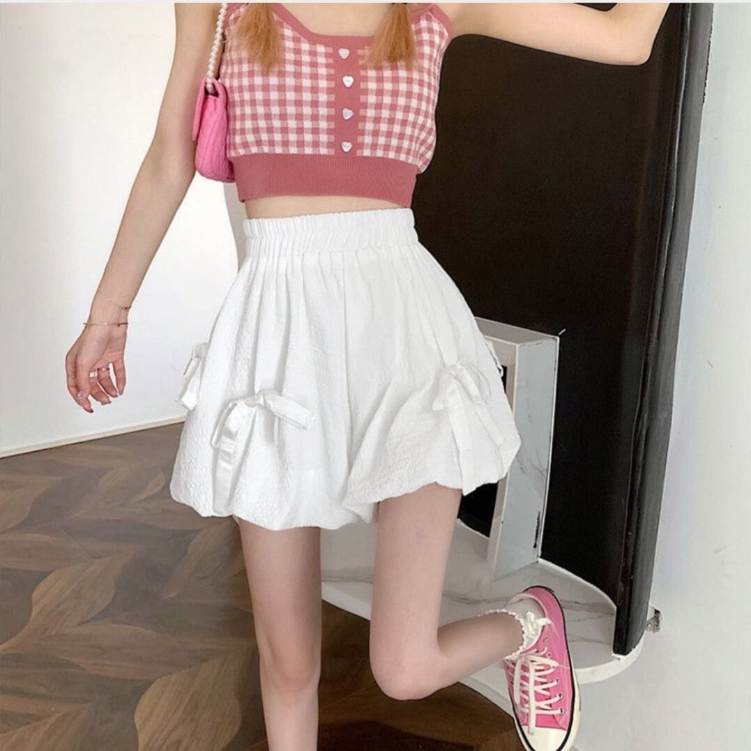 ゆったり ショーパン ウエストゴム 短パン ハイウエスト かぼちゃ ドロワーズ カジュアル かわいい 白 黒