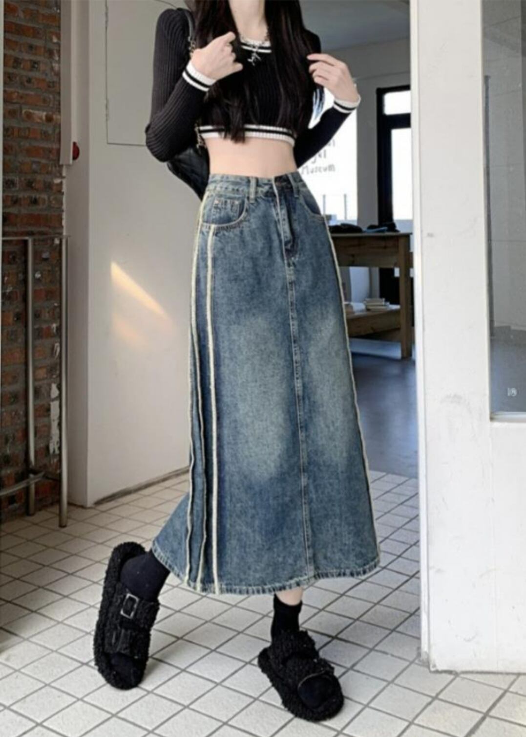 ボトムス 女 レディース ハイウエスト デニム ロングスカート 台型スカート