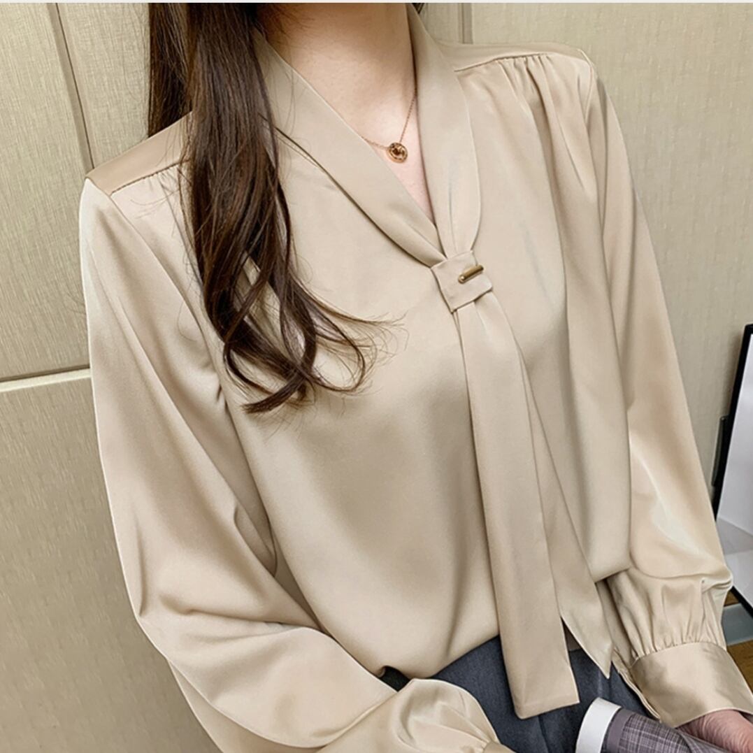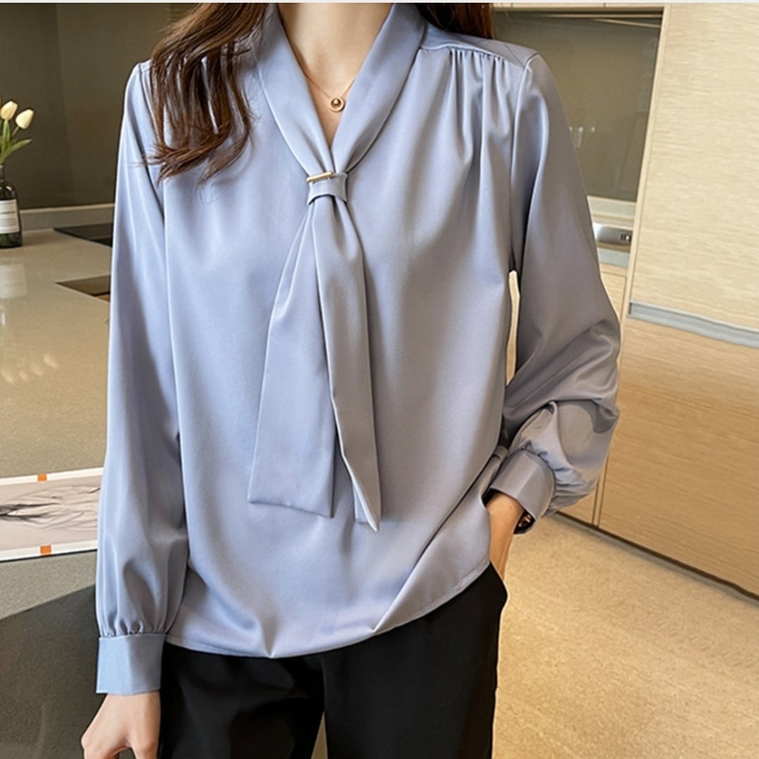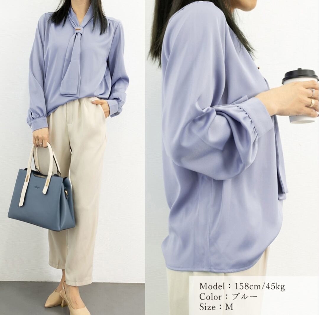 ドレープシャツ春秋/リボンタイブラウス/OLコーデおしゃれ