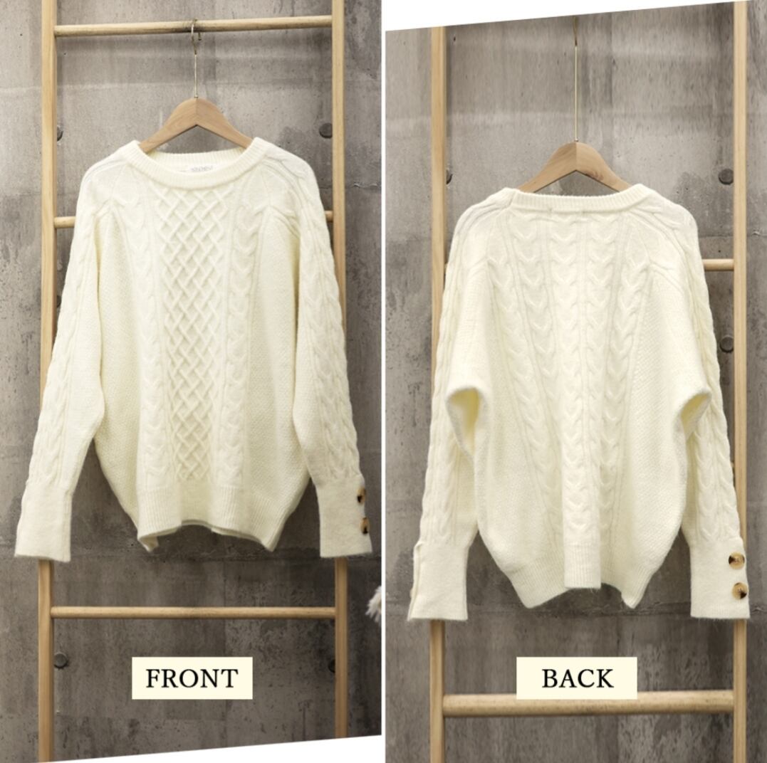 ゆったりしたサイズ感でこなれ感&体型カバー、表情豊かで立体的なケーブル編みニットトップスが新登場