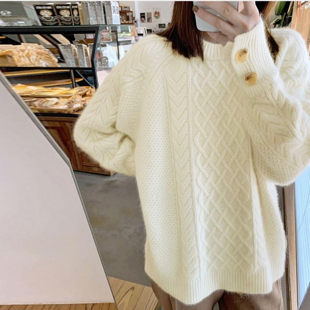 ケーブル編みニットトップスレディース韓国