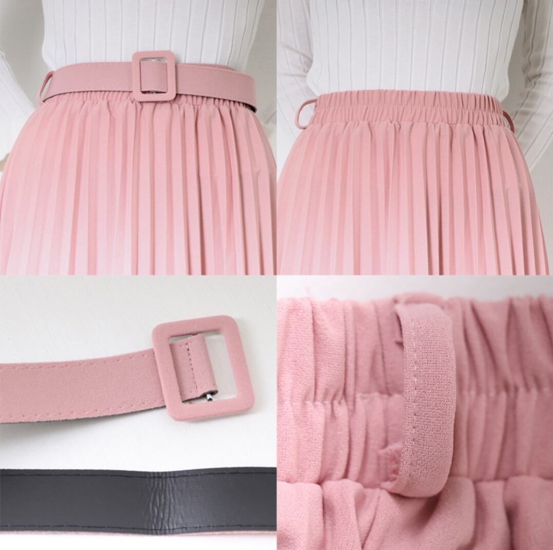 プリーツスカート ロング ベルト付き ミモレ丈スカート レディース 大人