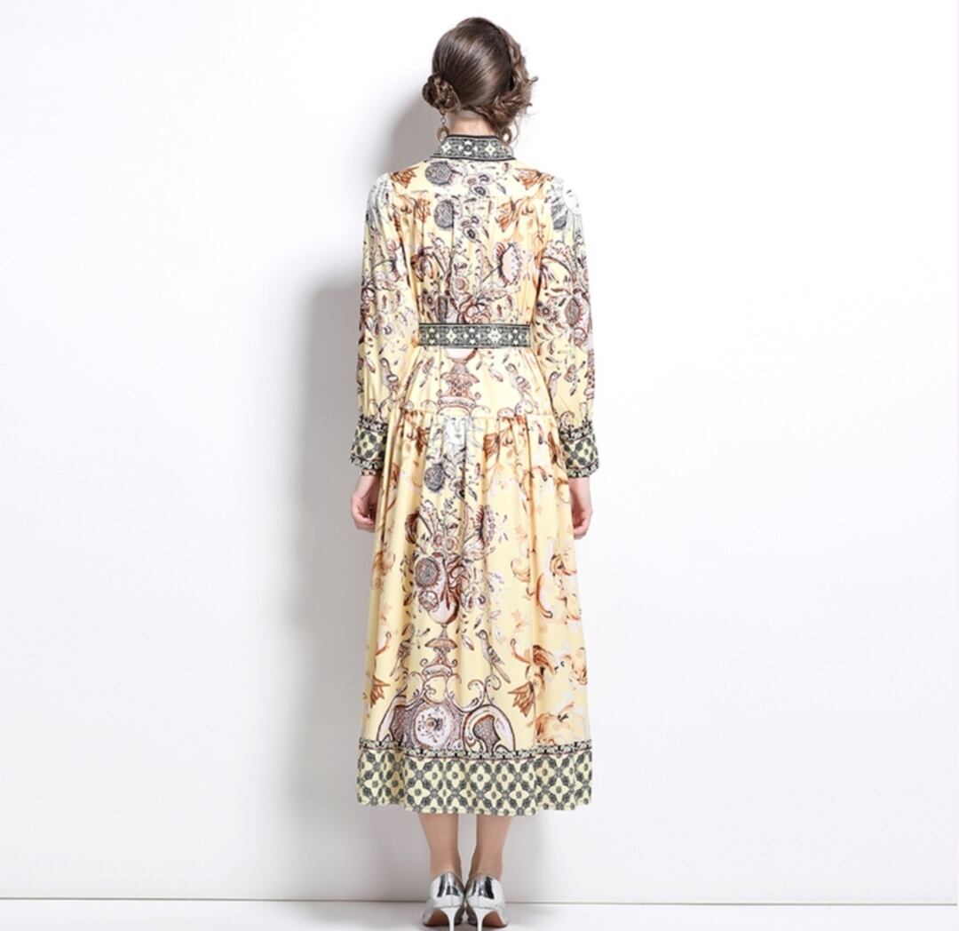 オシャレ宮廷風プリントワンピース レディース 長袖 エレガント