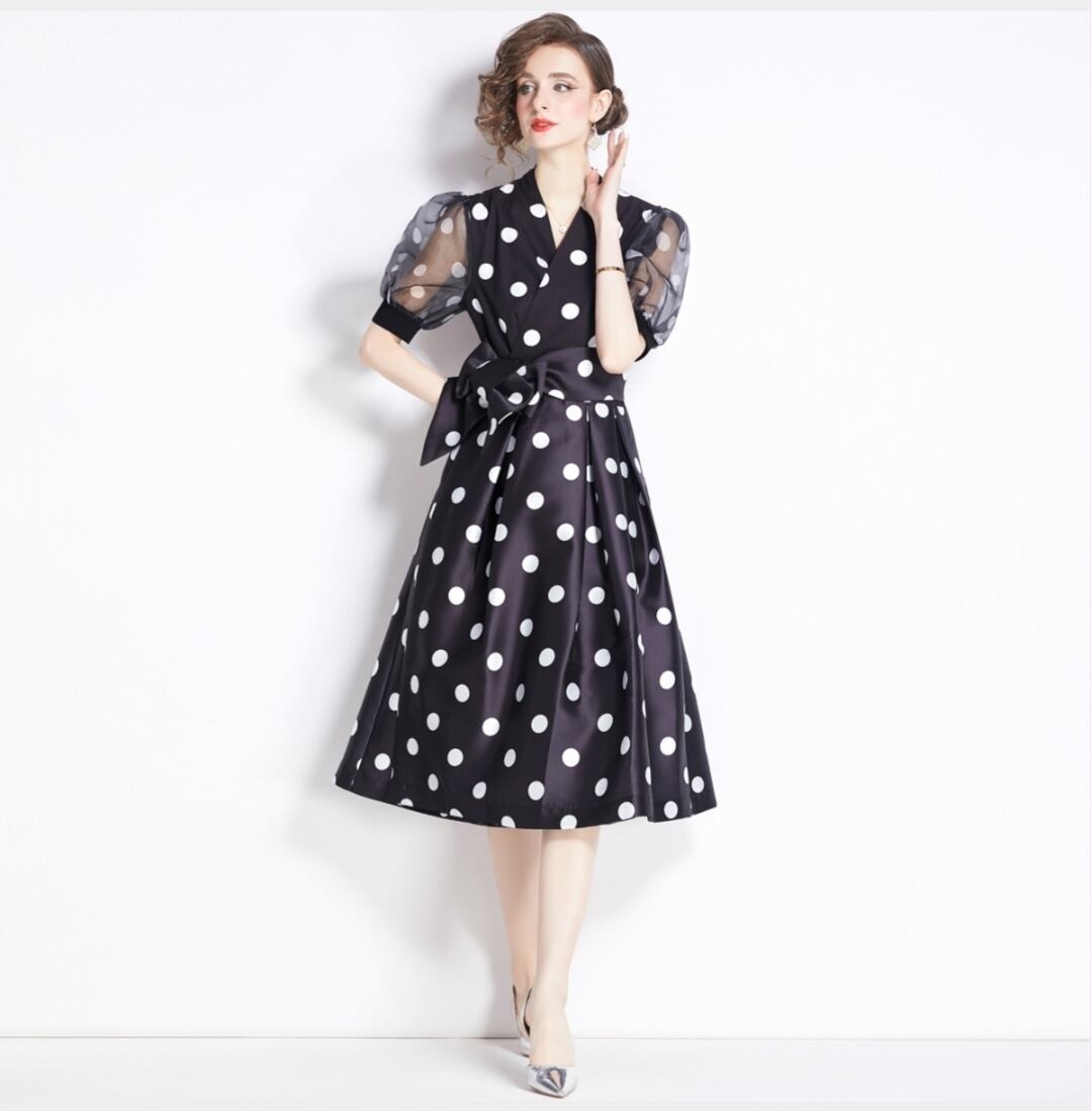 オシャレ高級感ドットプリントワンピース レディース エレガント