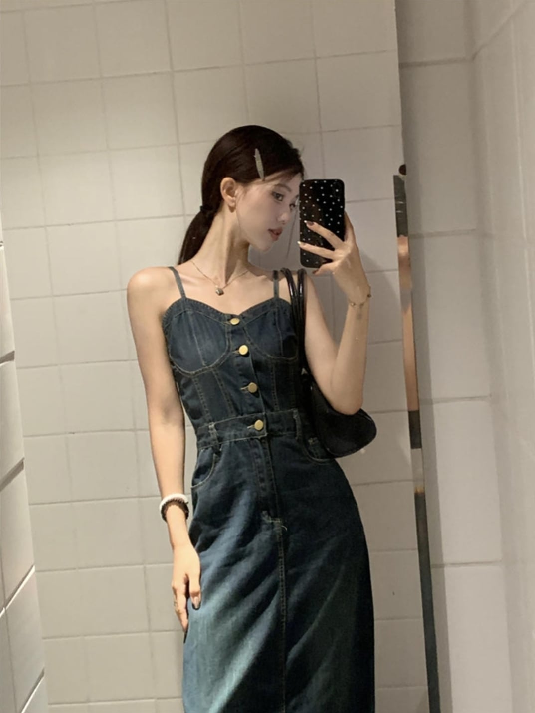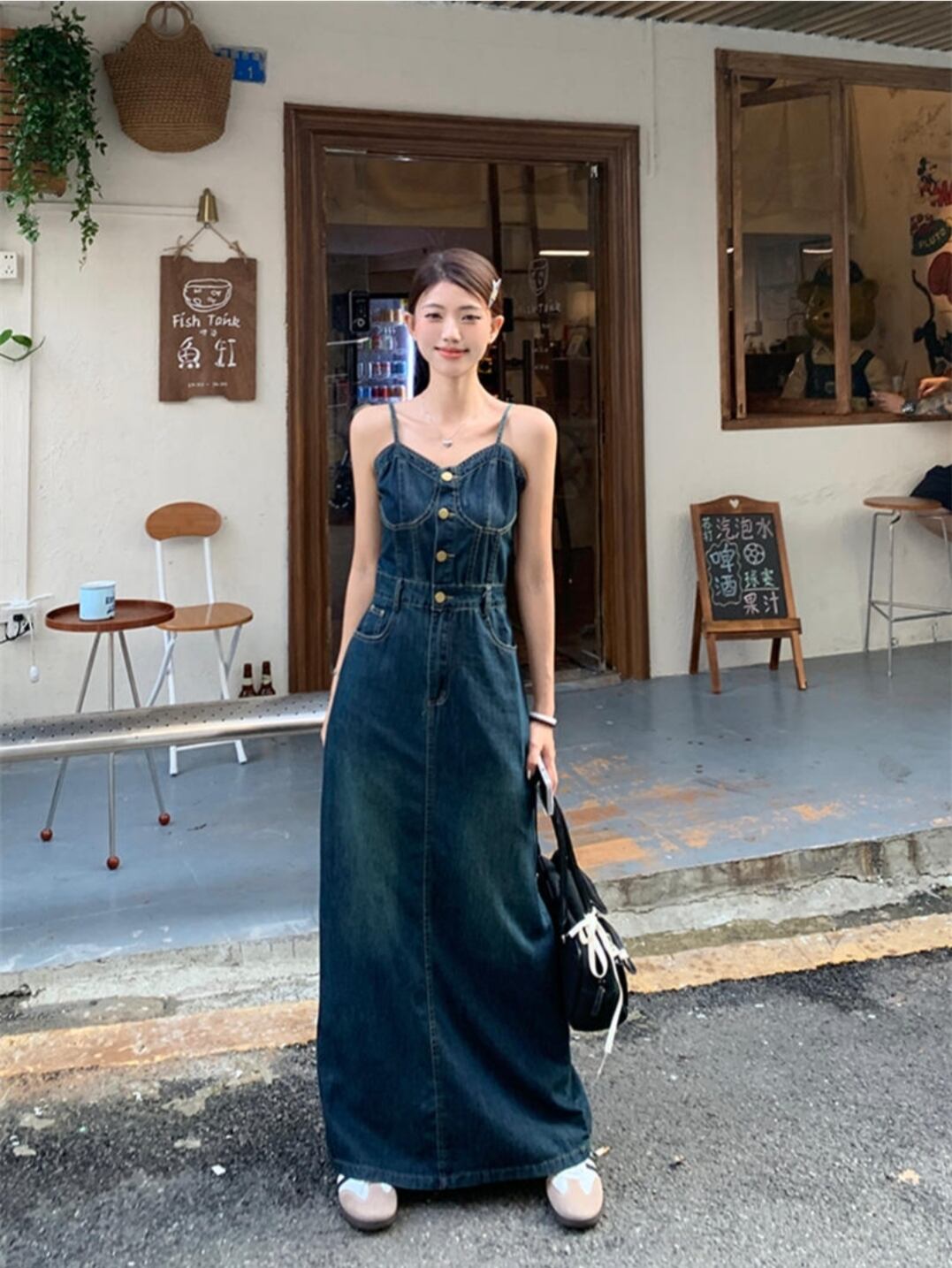 韓国系 カジュアル系 おしゃれ デニム キャミソールワンピース