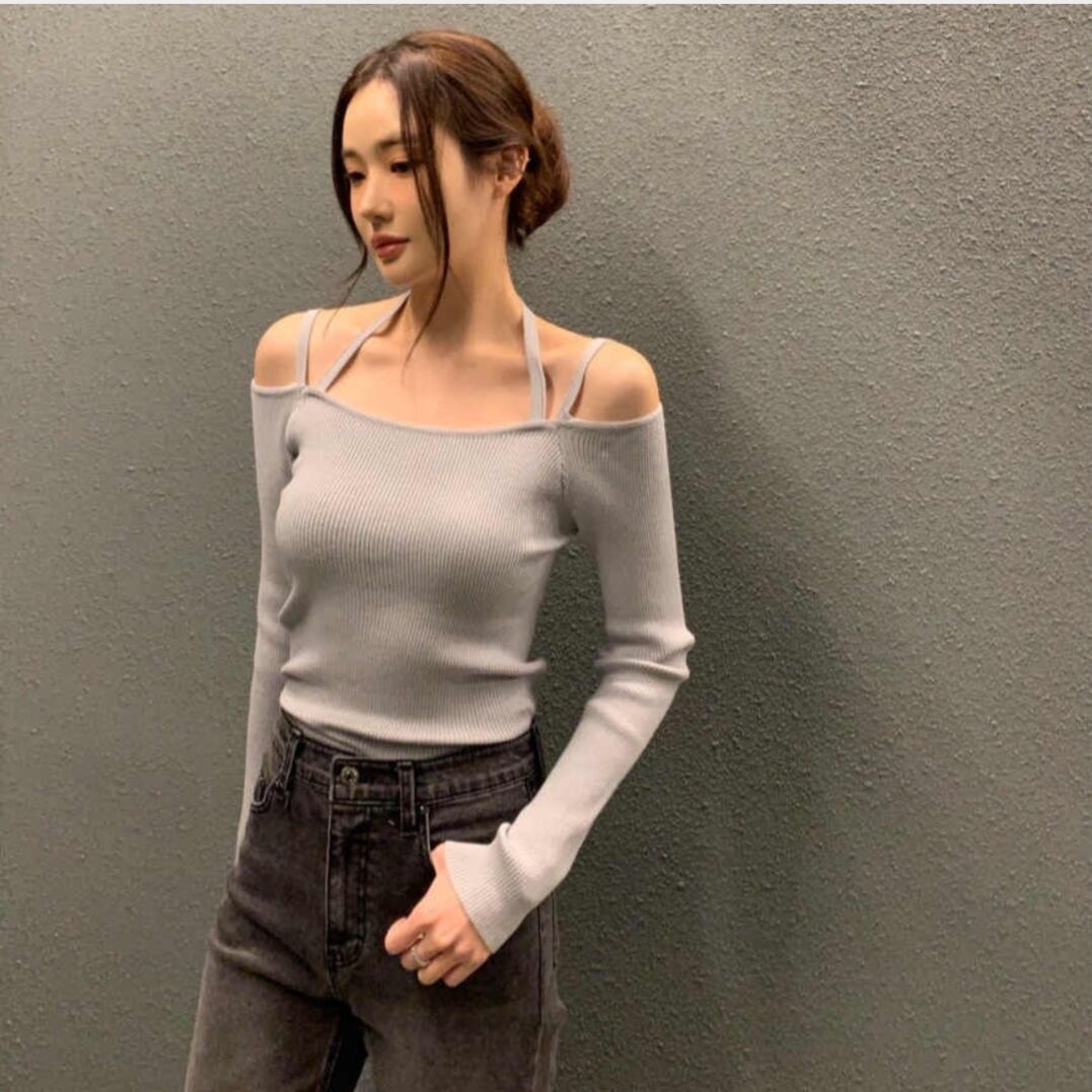 おしゃれ トップス ボートネック キャミソール ニット chic 韓国 ファッション