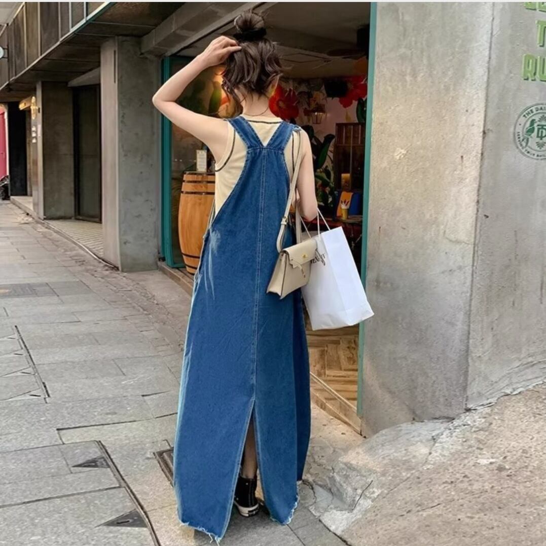 2025新作 デニム サロペット オールインワン オーバーオール マキシ丈ワンピース ロング レディース
