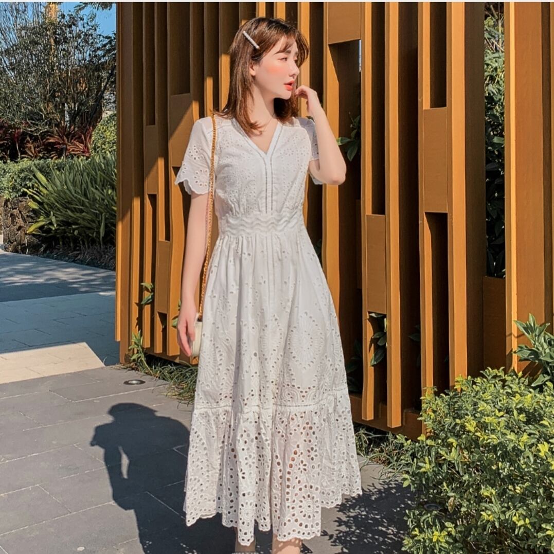 ホワイト リゾートワンピース 旅行 ワンピース 着痩せ 2025新作 デート フラワー柄 ミモレ丈ワンピース