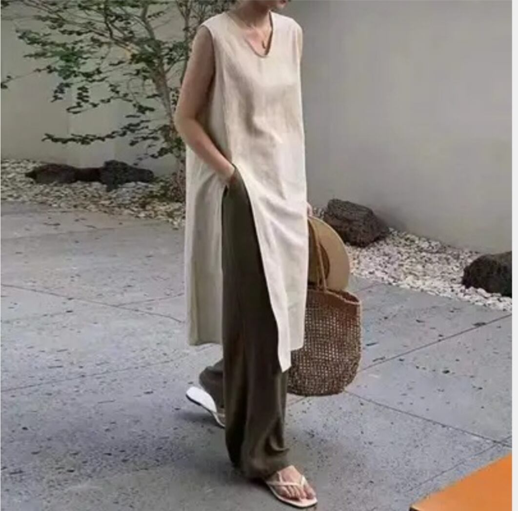 ワンピース Vネック ベストワンピース レディース ノースリーブ カジュアル 気質 エレガント