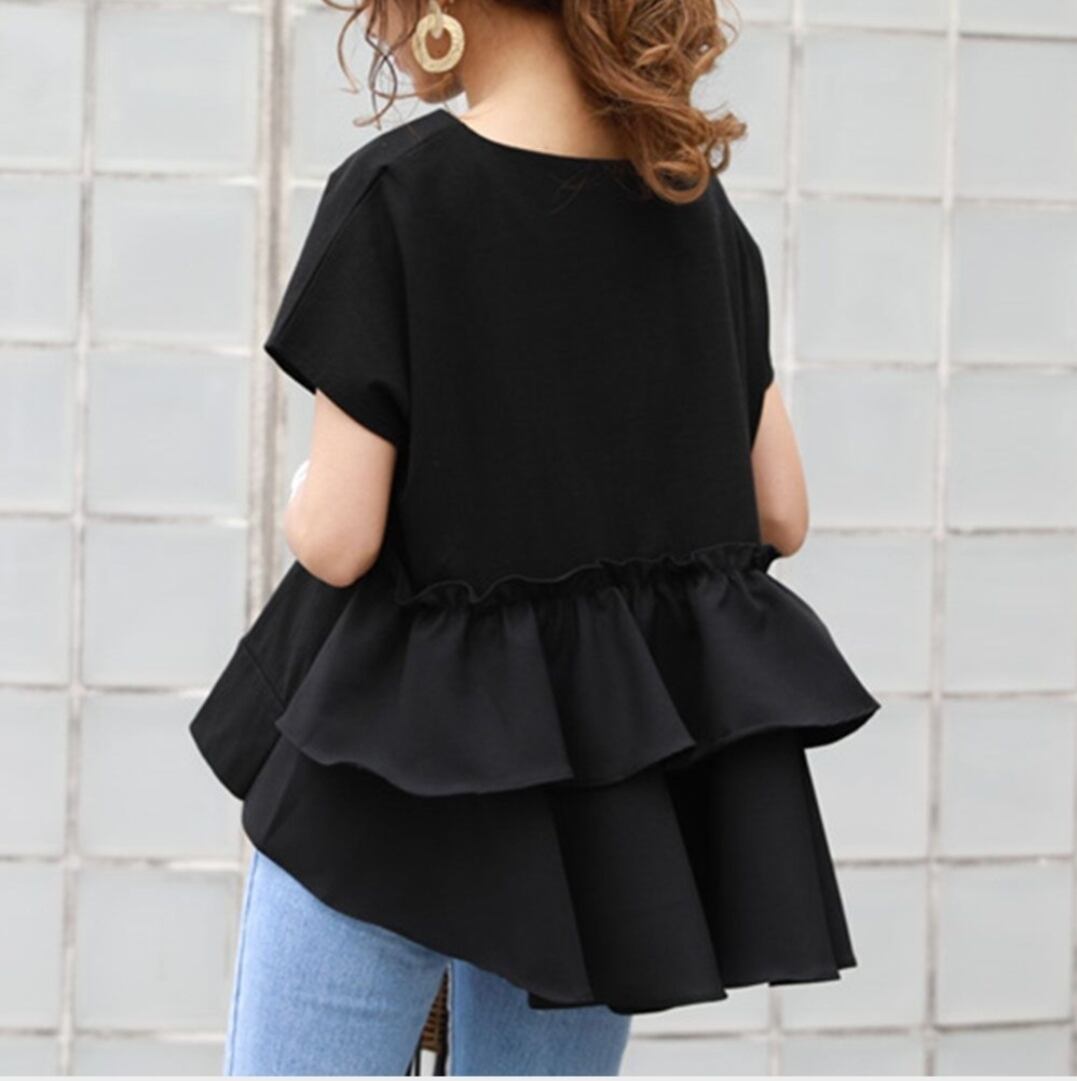 韓国風 Tシャツ レディーストップス 半袖シャツ ラウンドネック フレア フリーサイズ