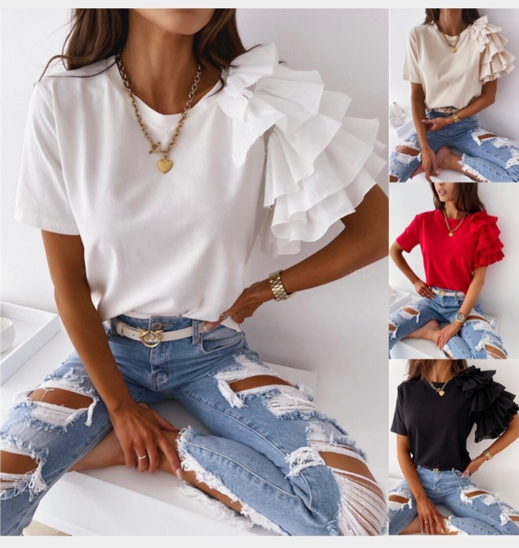 2025年夏新作 半袖シャツ tシャツ Tシャツ トップス レディース フレア ラウンドネック 大人可愛い