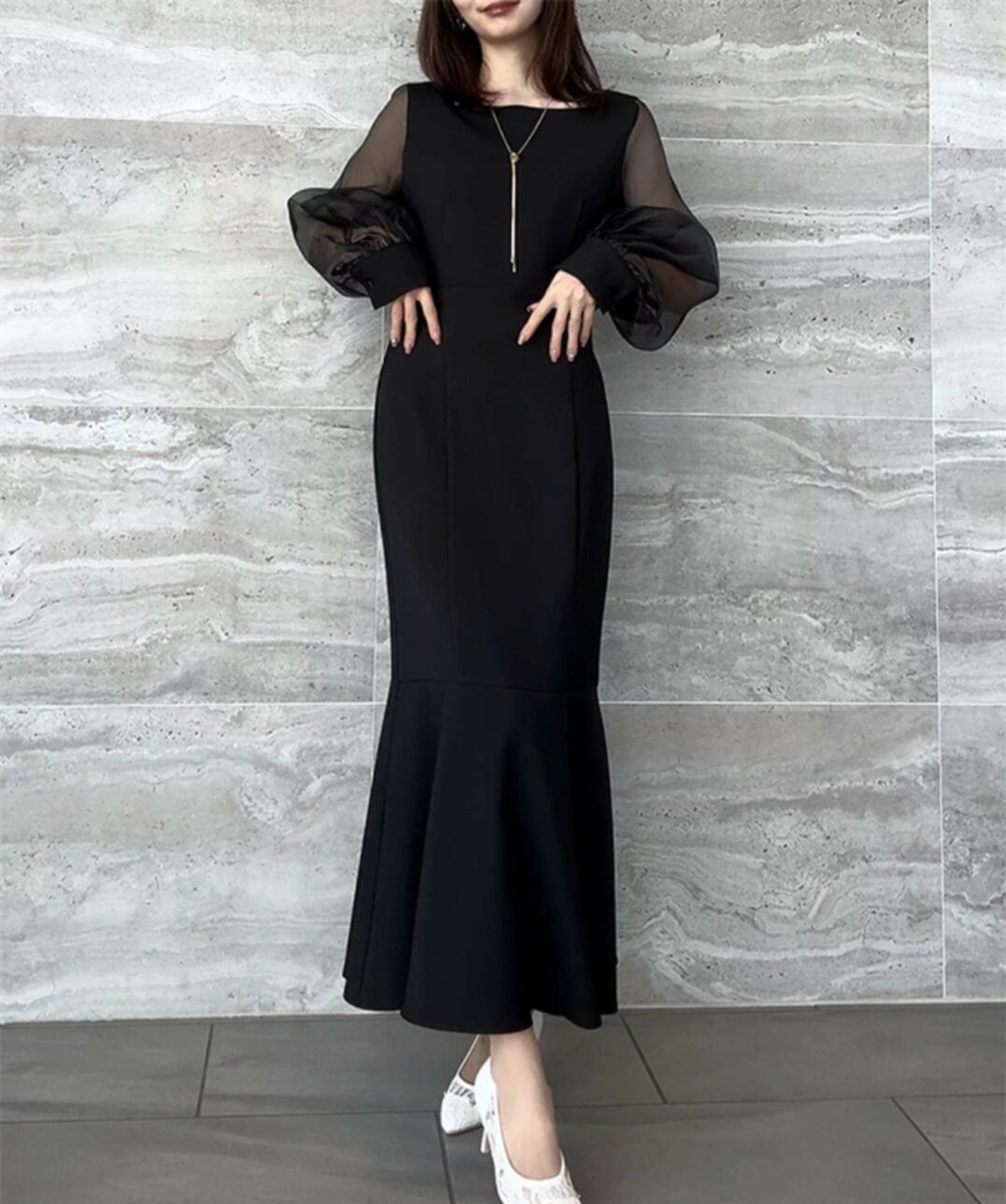 ワンピース レディース ロング丈ワンピース 長袖 ドレス 異素材 気質 きれいめ