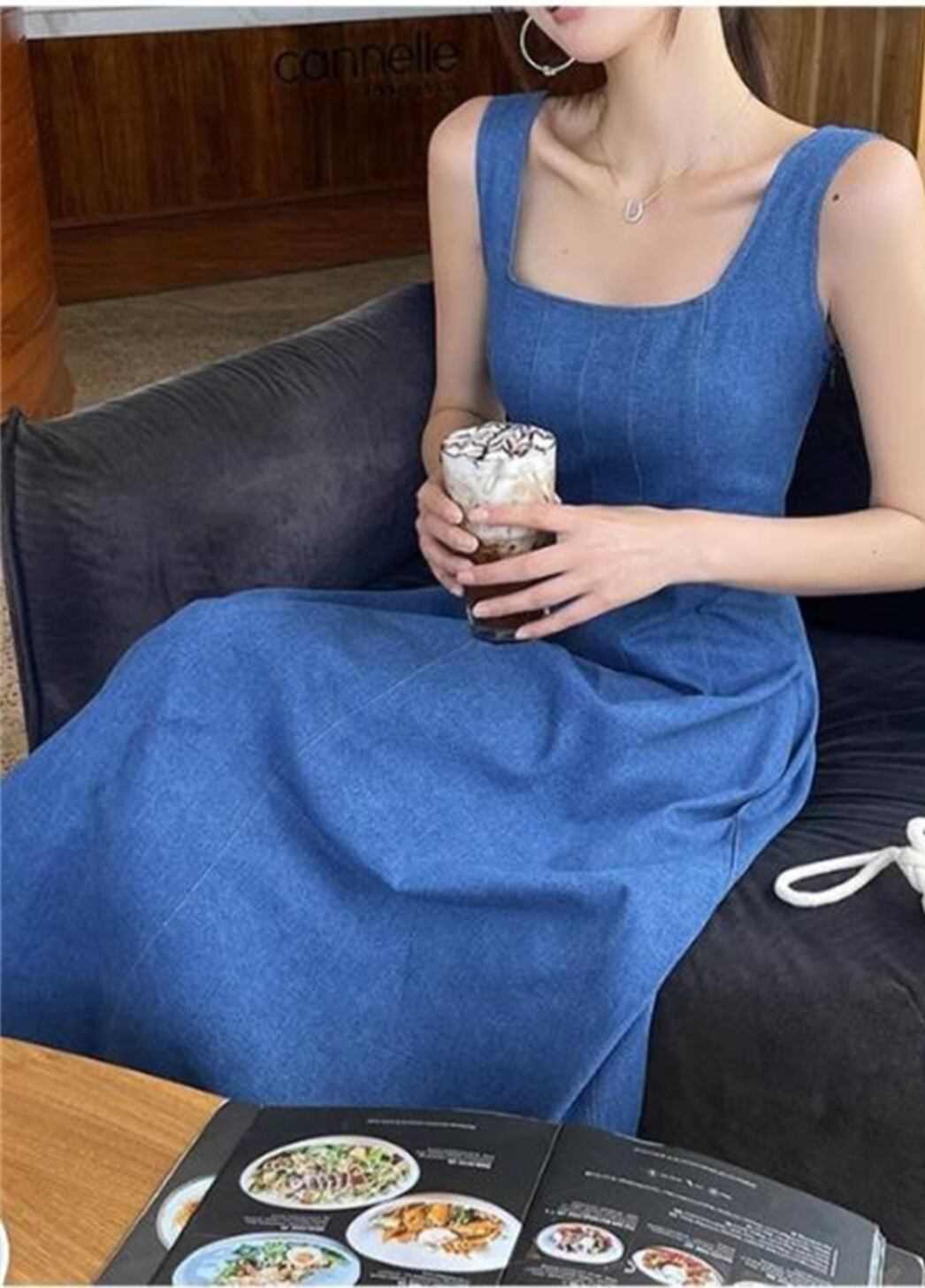 デニムノースリーブワンピース 2025年夏 大人エレガントロング丈