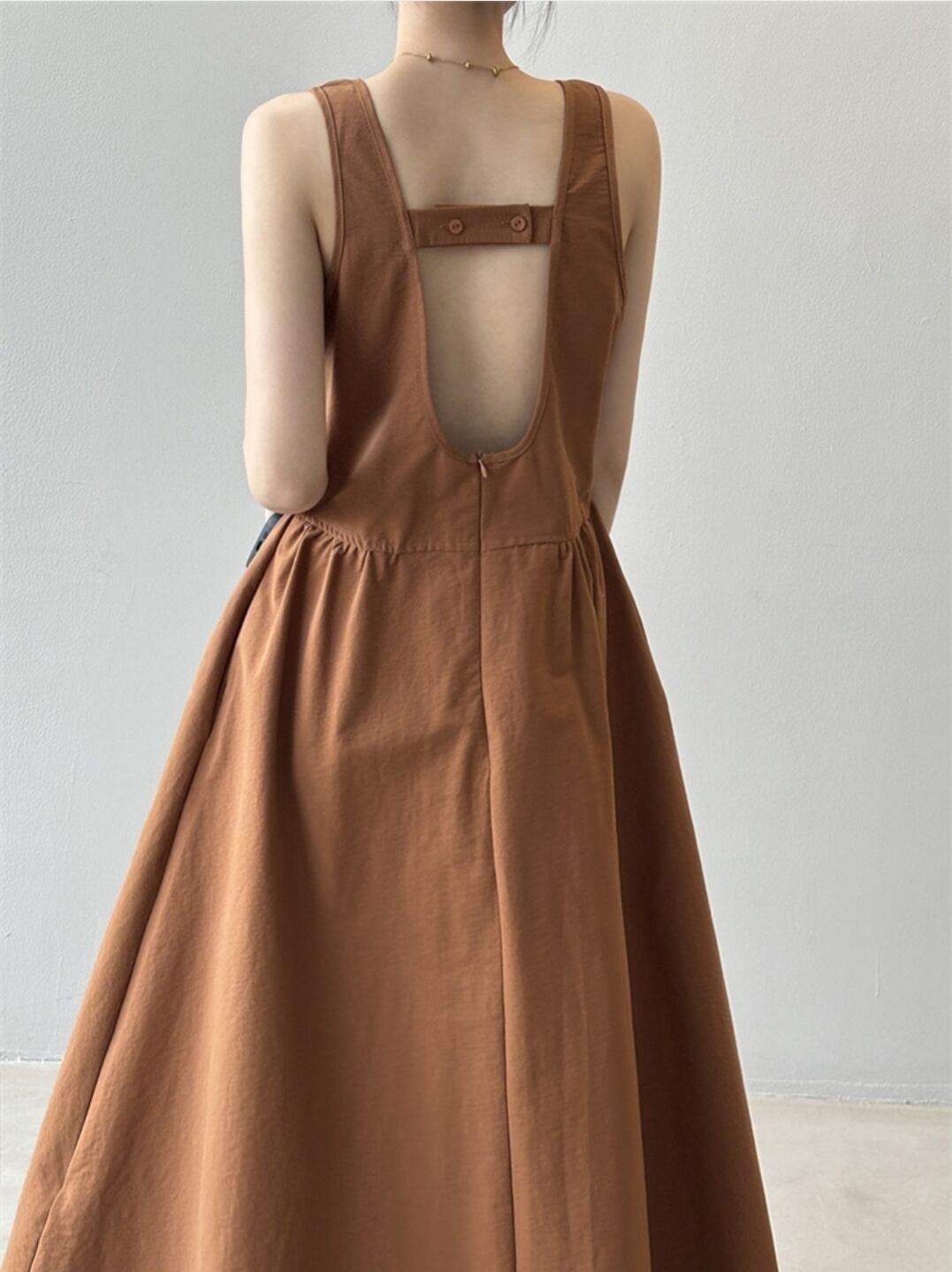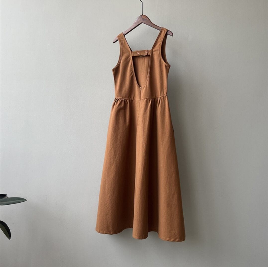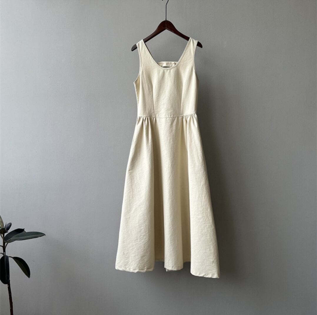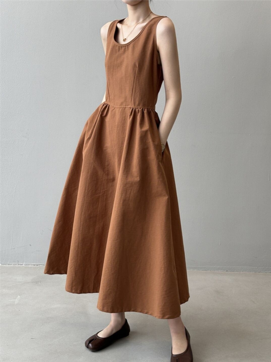 トレンド感たっぷり 夏新作 無袖アーティスティックロングワンピース ウエストマークデザイン