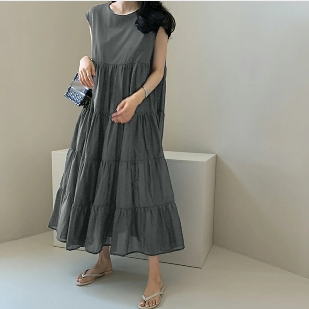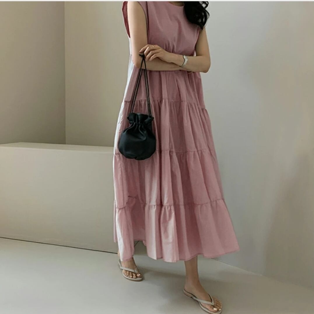 夏新作 ワンピース レディース ロング丈ワンピース 韓国風 ノースリーブ ラウンドネック 体型カバー